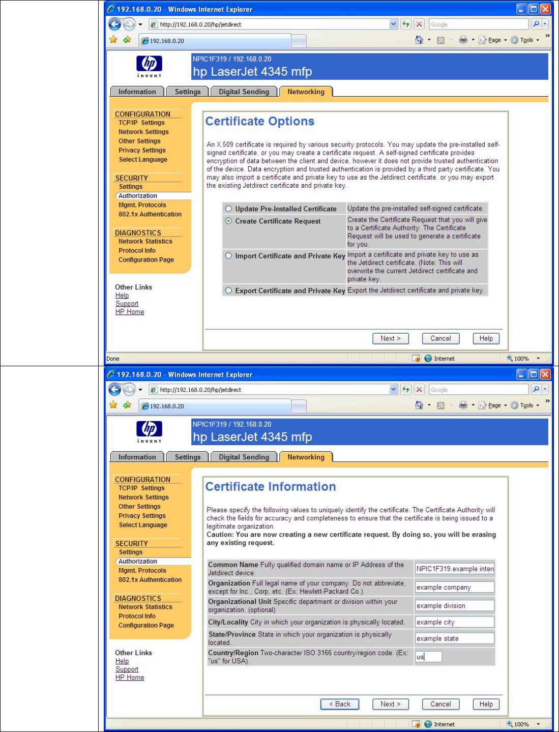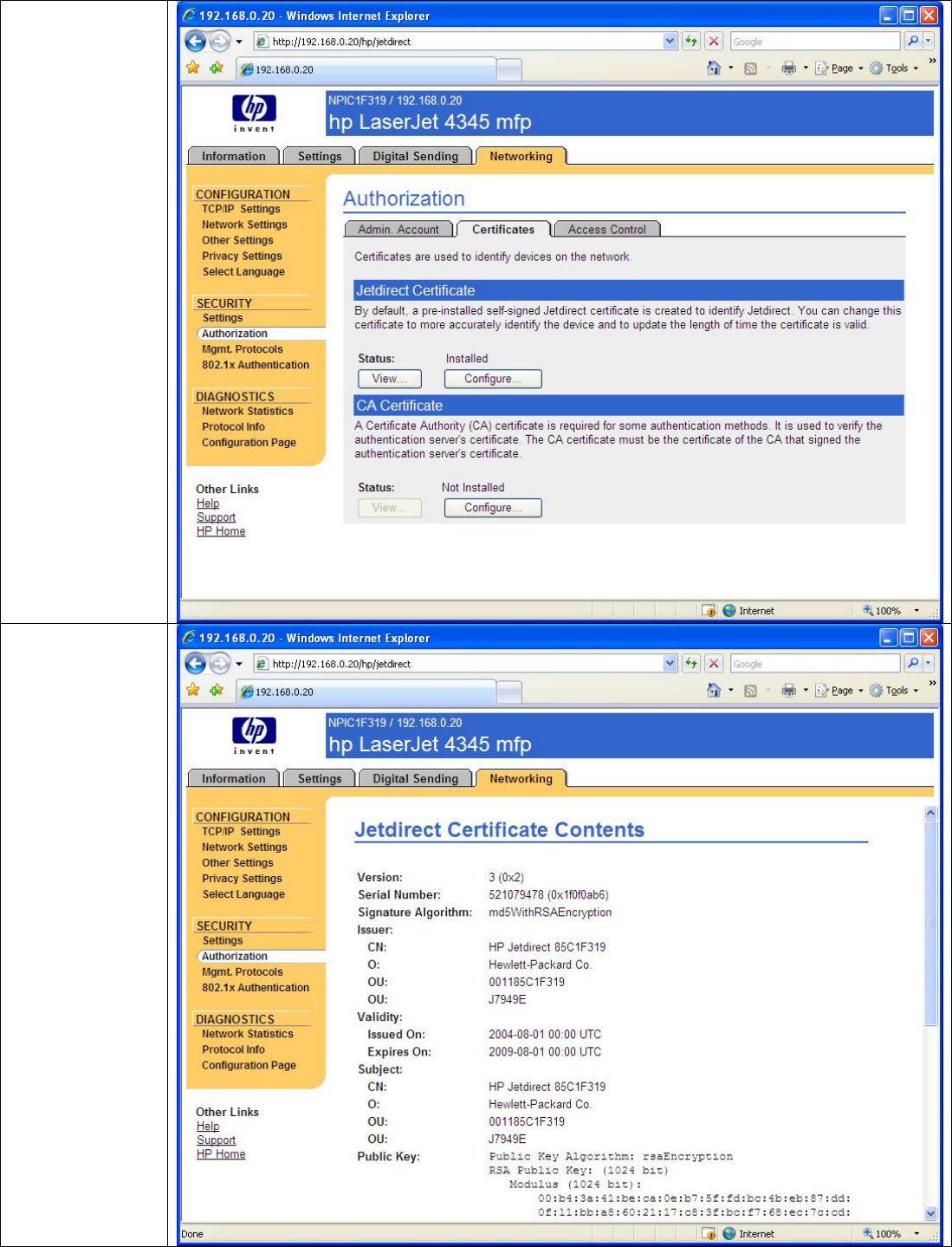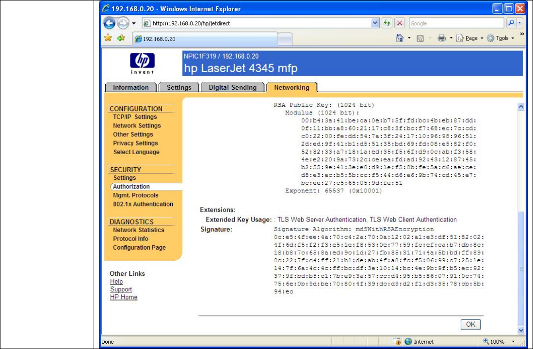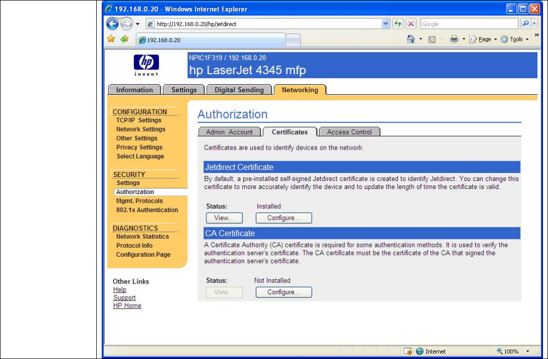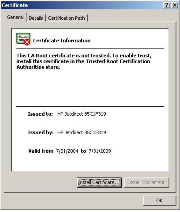 • Each Jetdirect should have a unique certificate.