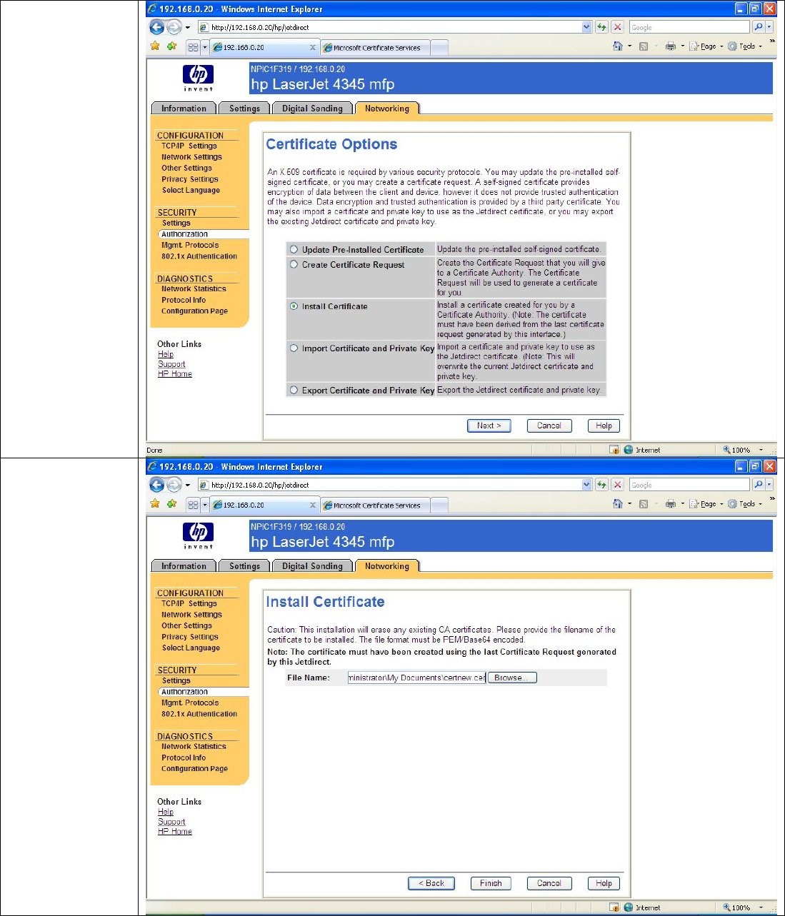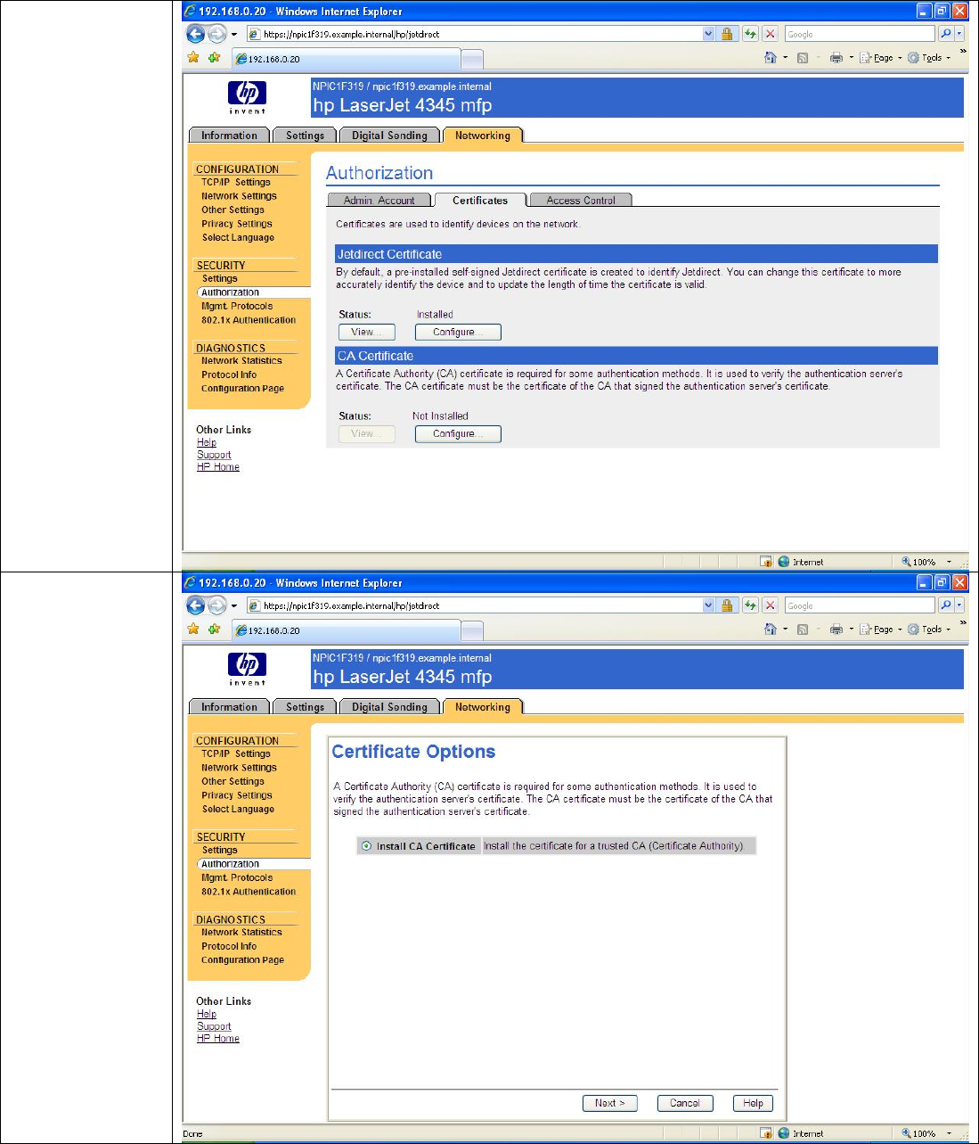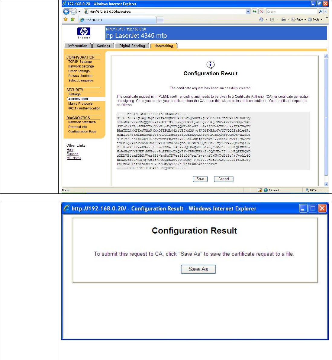• Each Jetdirect should have a unique certificate.