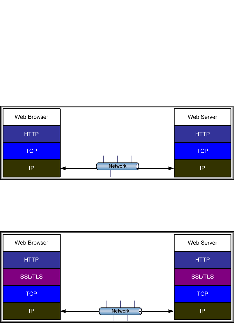 In Figure 2 – HTTPS Application, we can see how SSL/TLS is deployed. This would be done by using