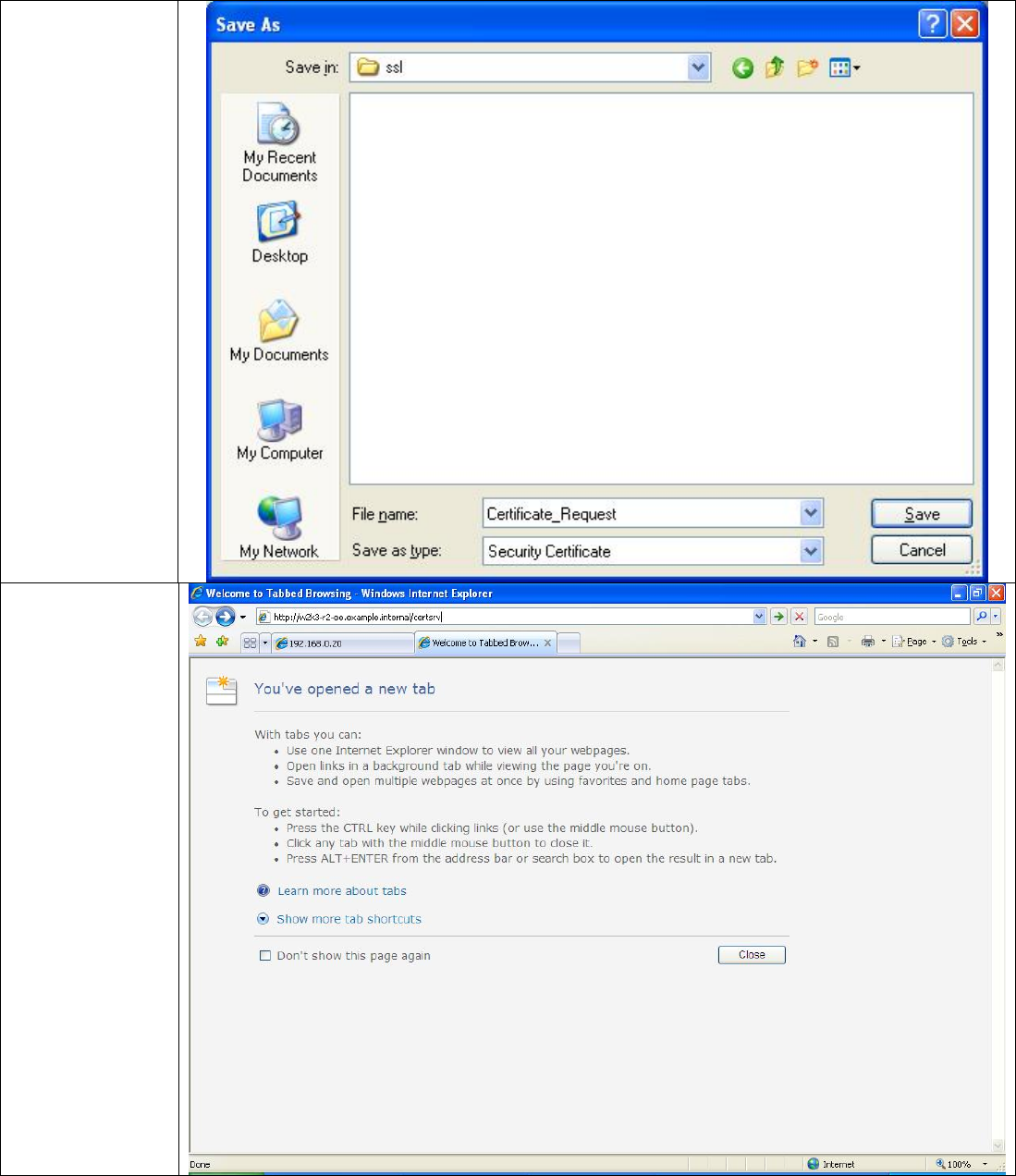 • Use the Web Server (as described previously) to generate a Certificate Request so that the