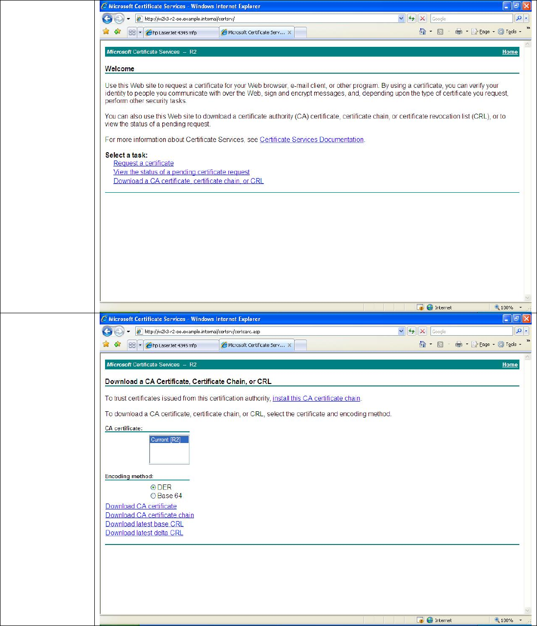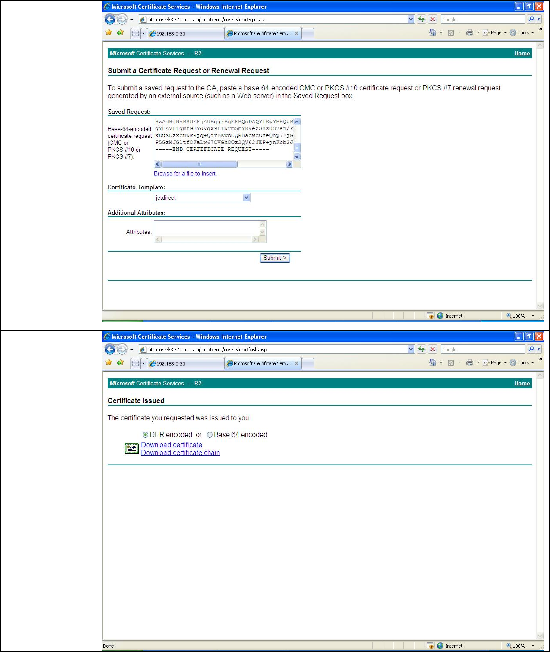 chain. Jetdirect has minimal amount of storage available for certificates so it requires that