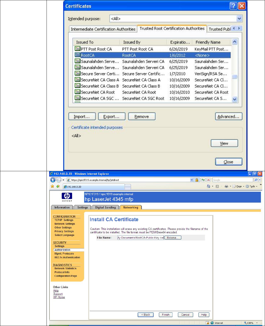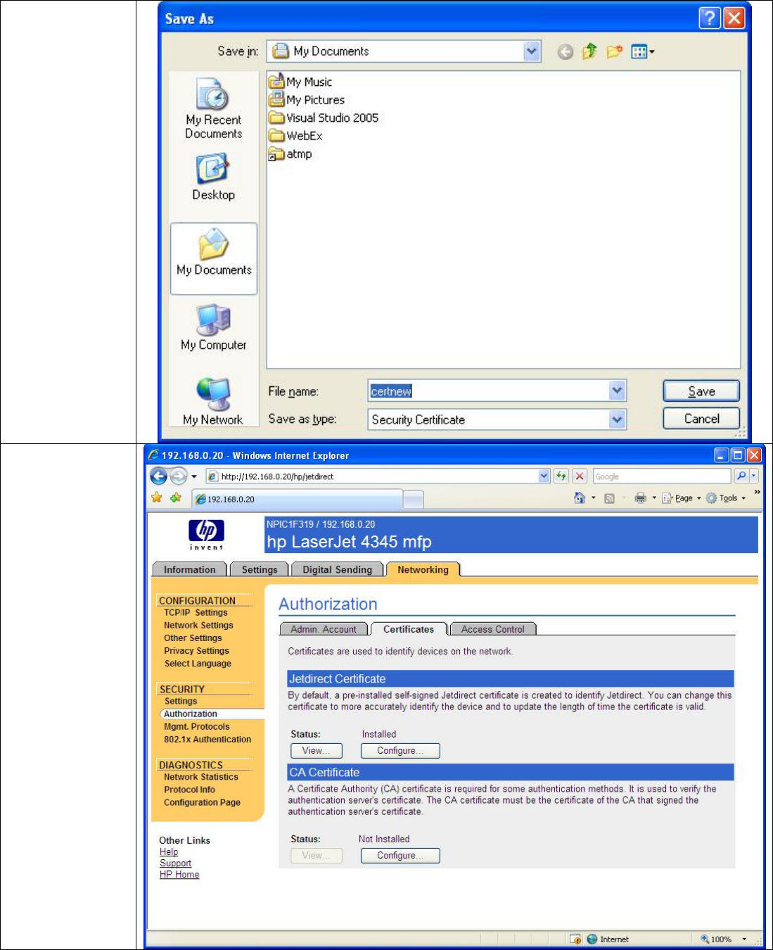Jetdirect certificate.