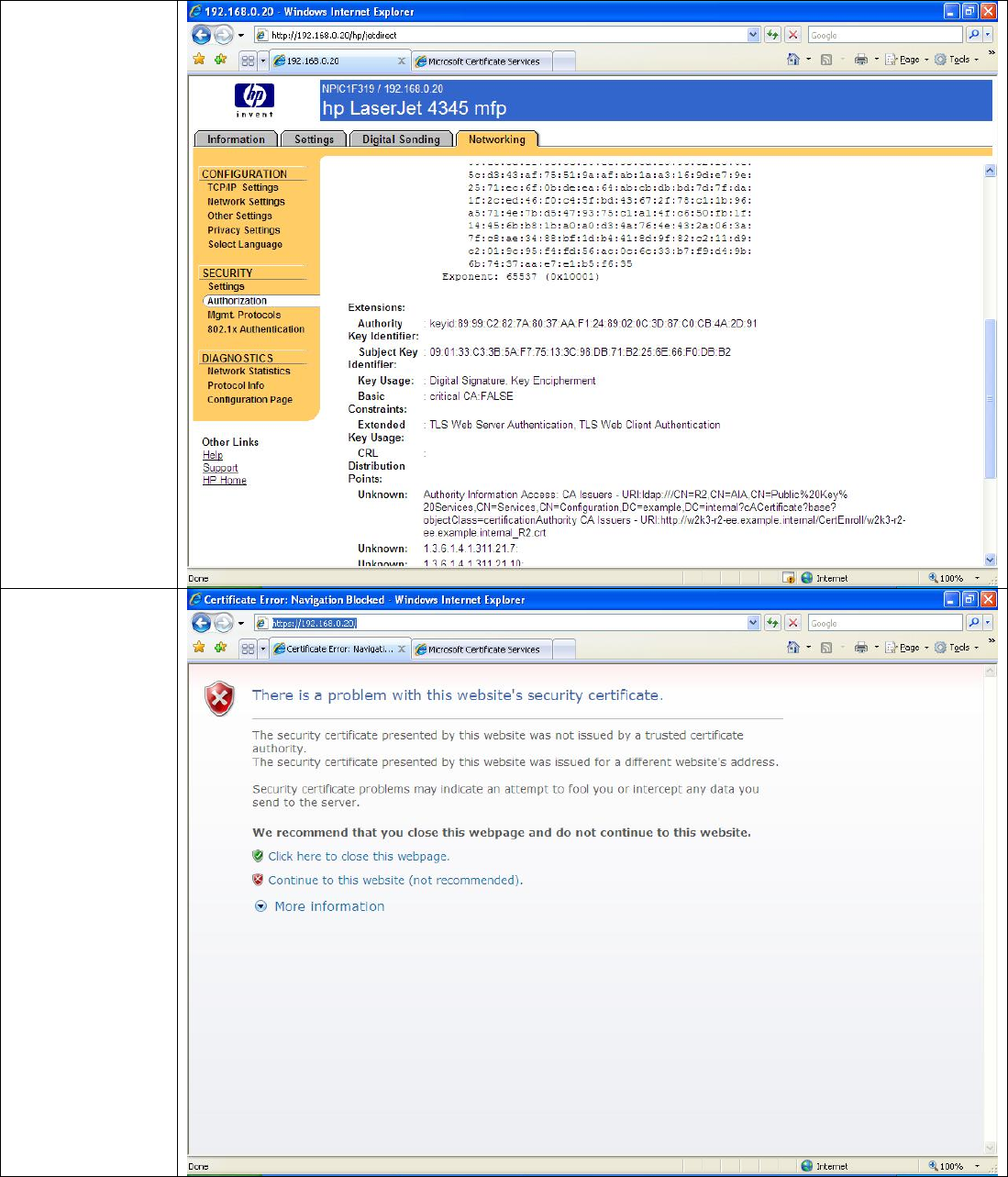 not a way to verify our Jetdirect’s certificate with an IP address in the URL. IPPS should have flagged