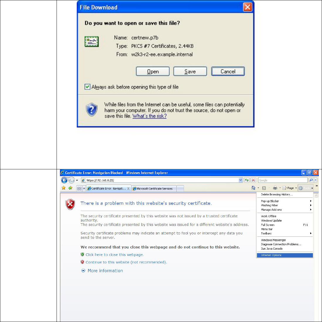 security alert dialog shown in Figure 7.