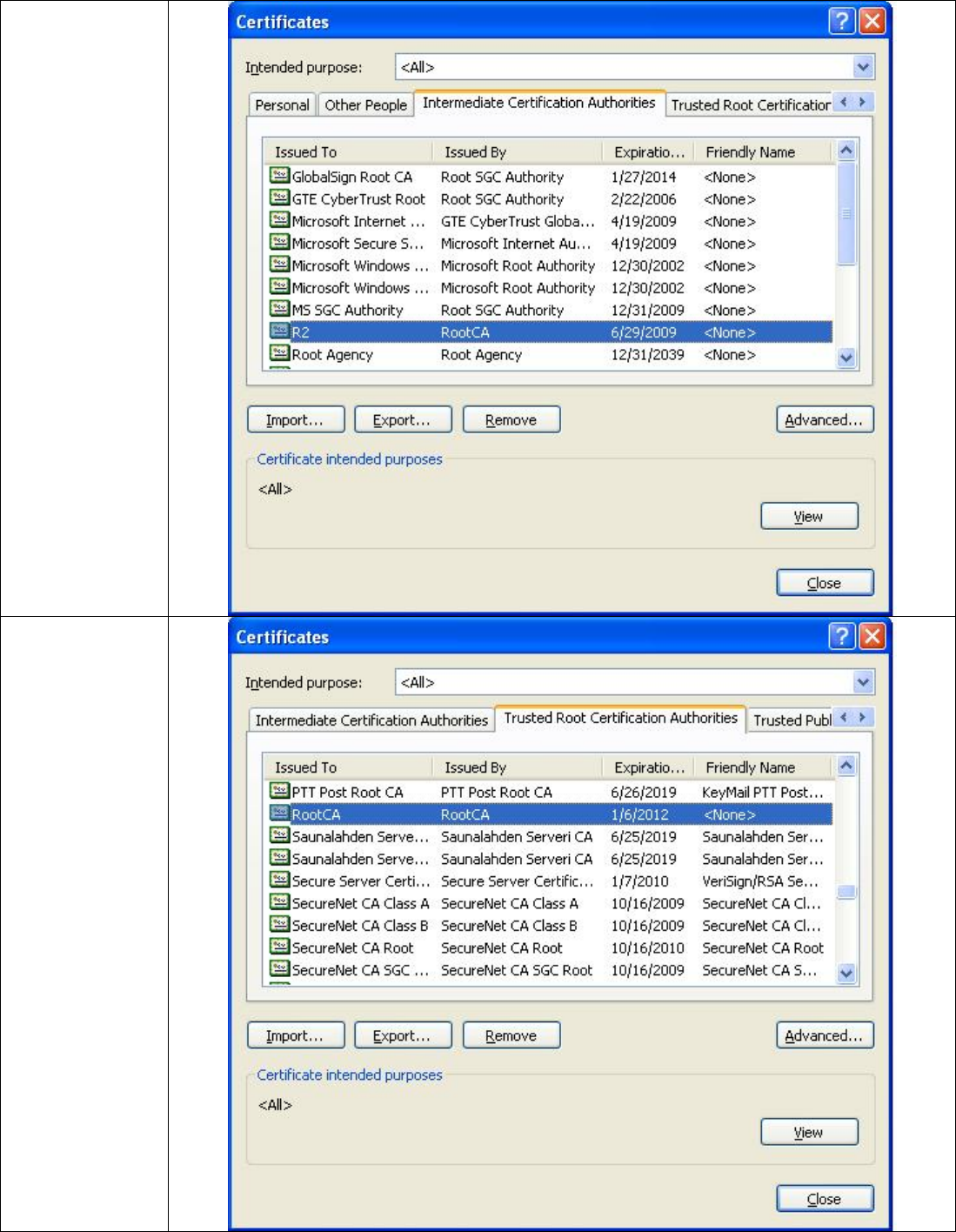 certificate has to be the top-level CA certificate.