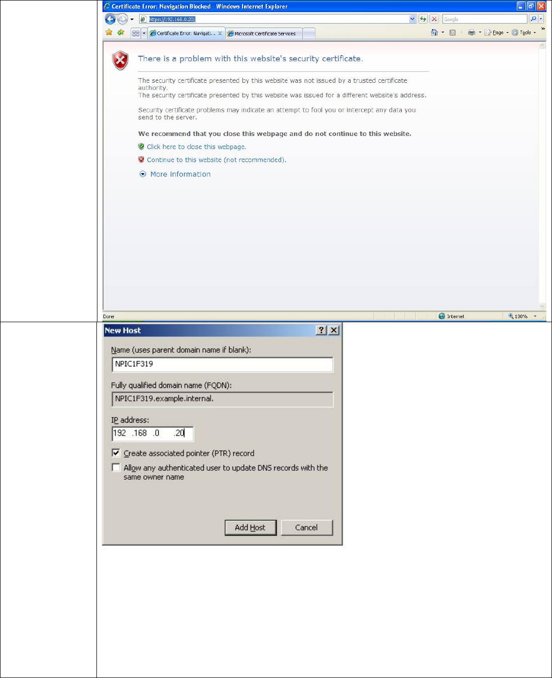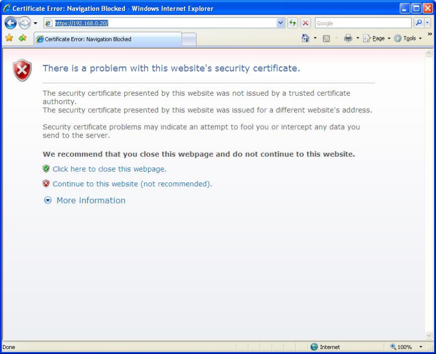 a certificate error but it did not.