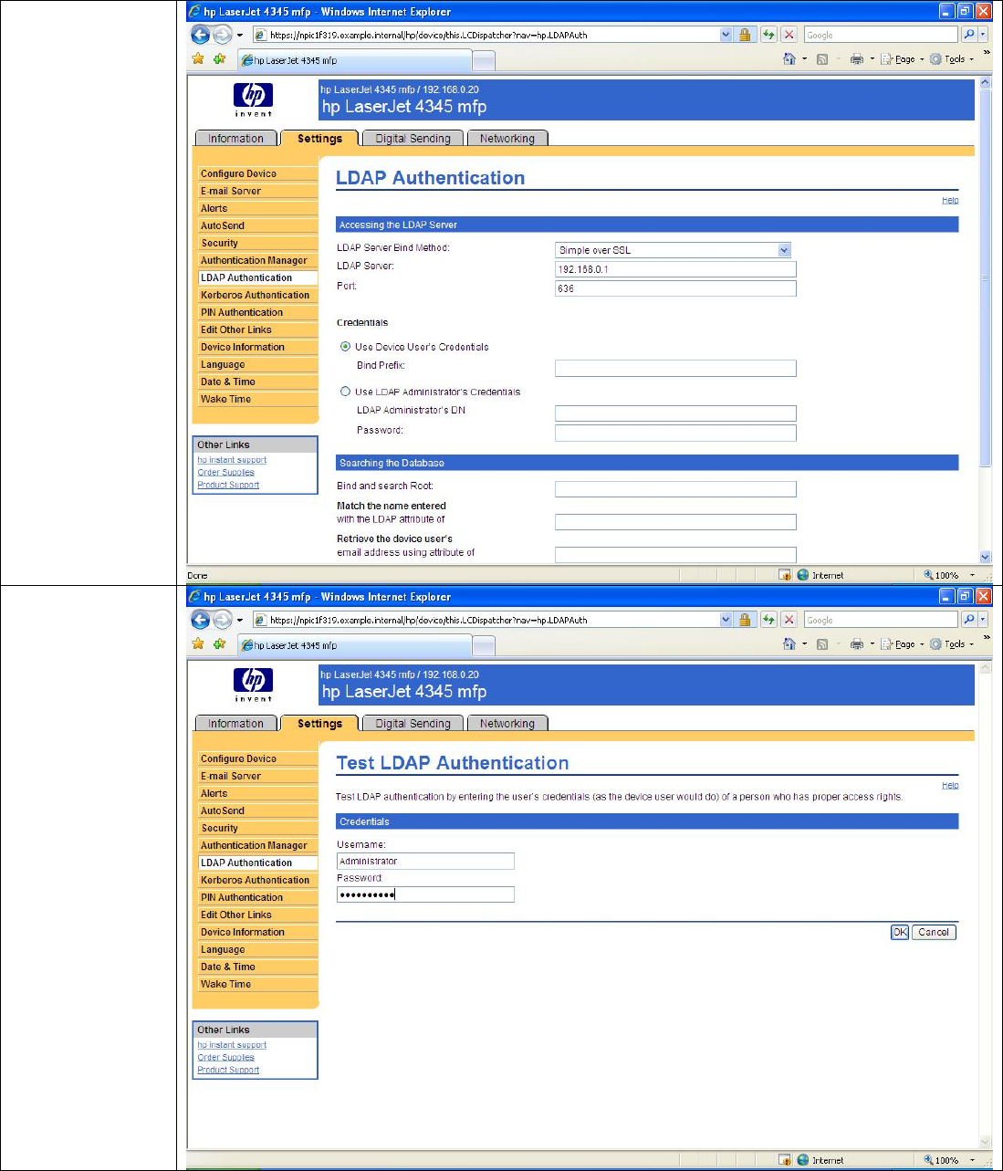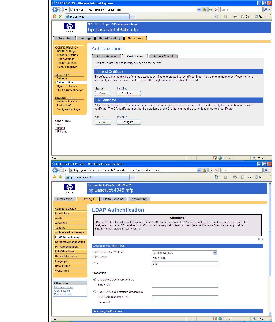 Authentication and Server Authentication unless you are absolutely sure that Jetdirect will only