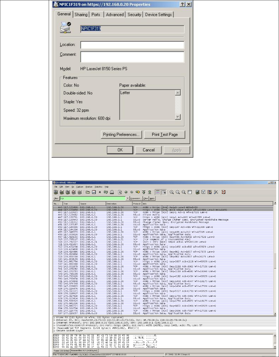 In Figure 4 – HTTP Session, we bring up a normal HTTP session with an HP MFP.