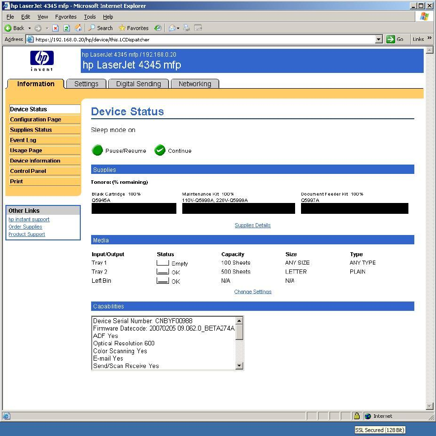 HP Jetdirect and SSL/TLS