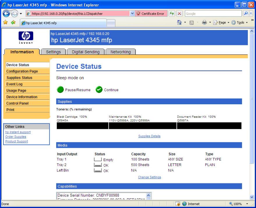 browser to a Jetdirect device.