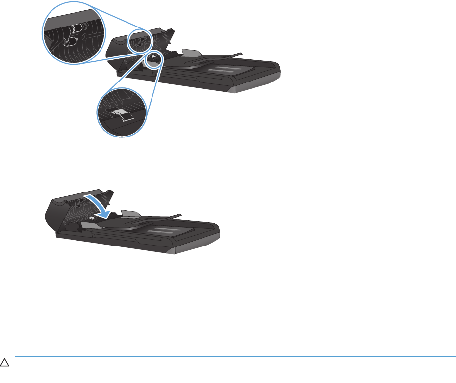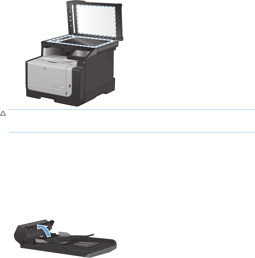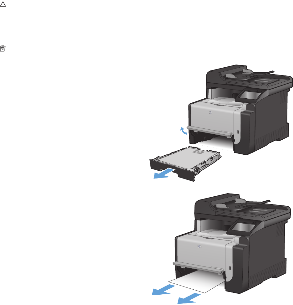 - Jam in (area), Open door and clear jam