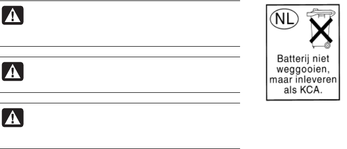 battery is incorrectly replaced. Replace only with