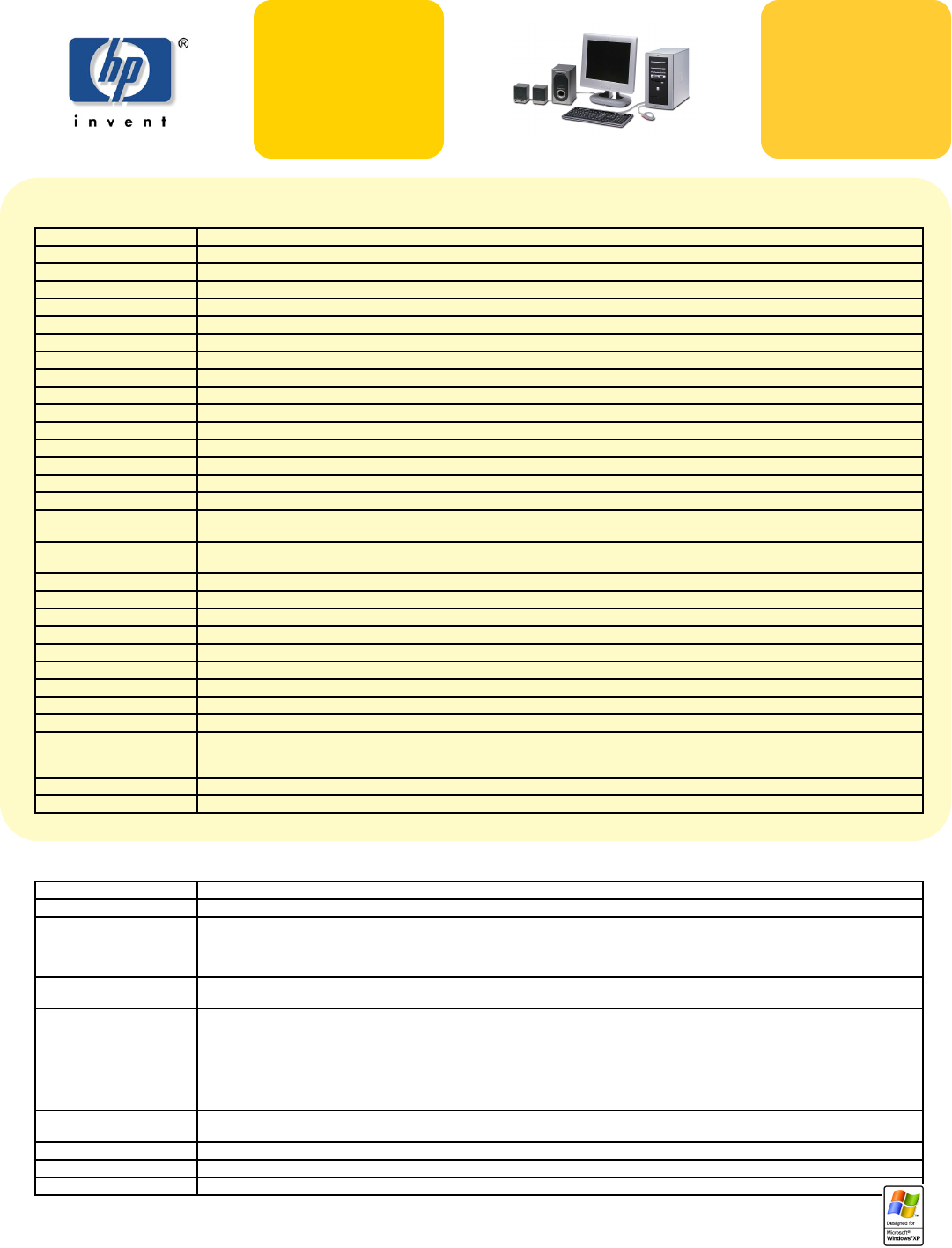 *Monitor *Monitor and and speakers speakers are are not not included. included. HP HP and and the the invent invent signature signature are are trademarks trademarks of of the the Hewlett-Packard Hewlett-Packard Company. Company. Windows Windows is is a a registered registered trademark trademark of of Microsoft Microsoft Corporation Corporation in in the the United United States