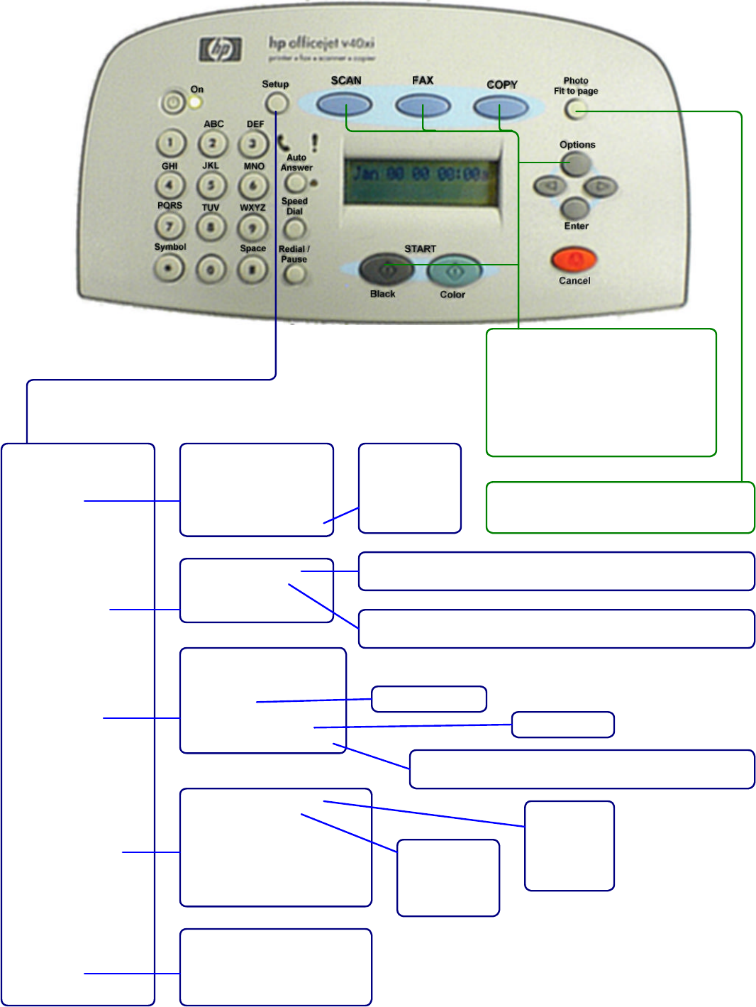 Hp Officejet V40 All In One Printer Illustrated Parts List V Series Front Panel Menu Guide