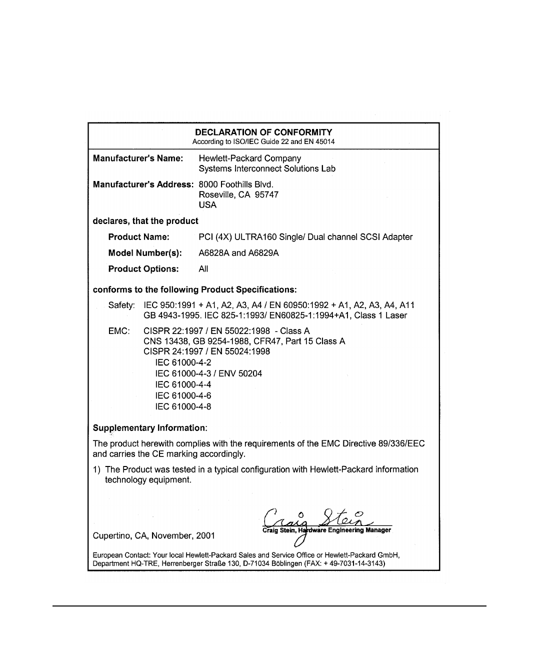 Hp Pci Dual Channel Ultra160 Scsi Host Adapter A6829A Users Manual