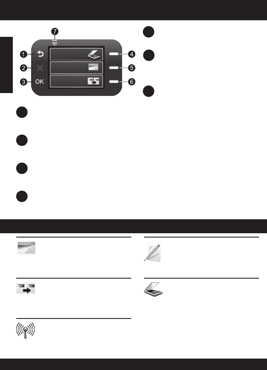 Opens the Scan/Wireless Menu. When viewing screens other than the Home screen, selects options