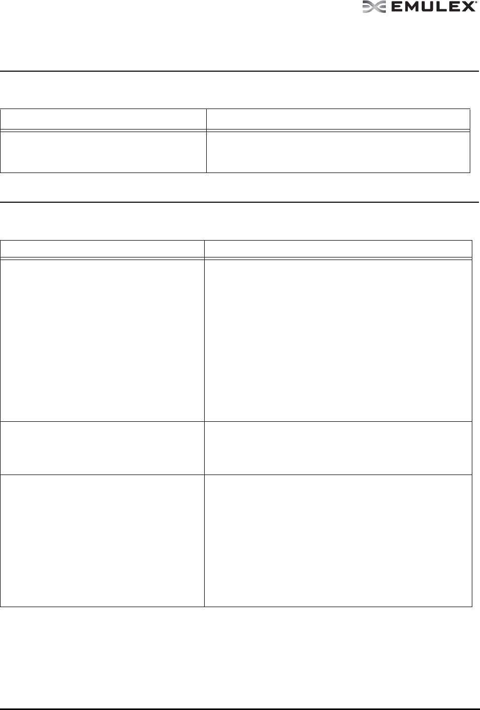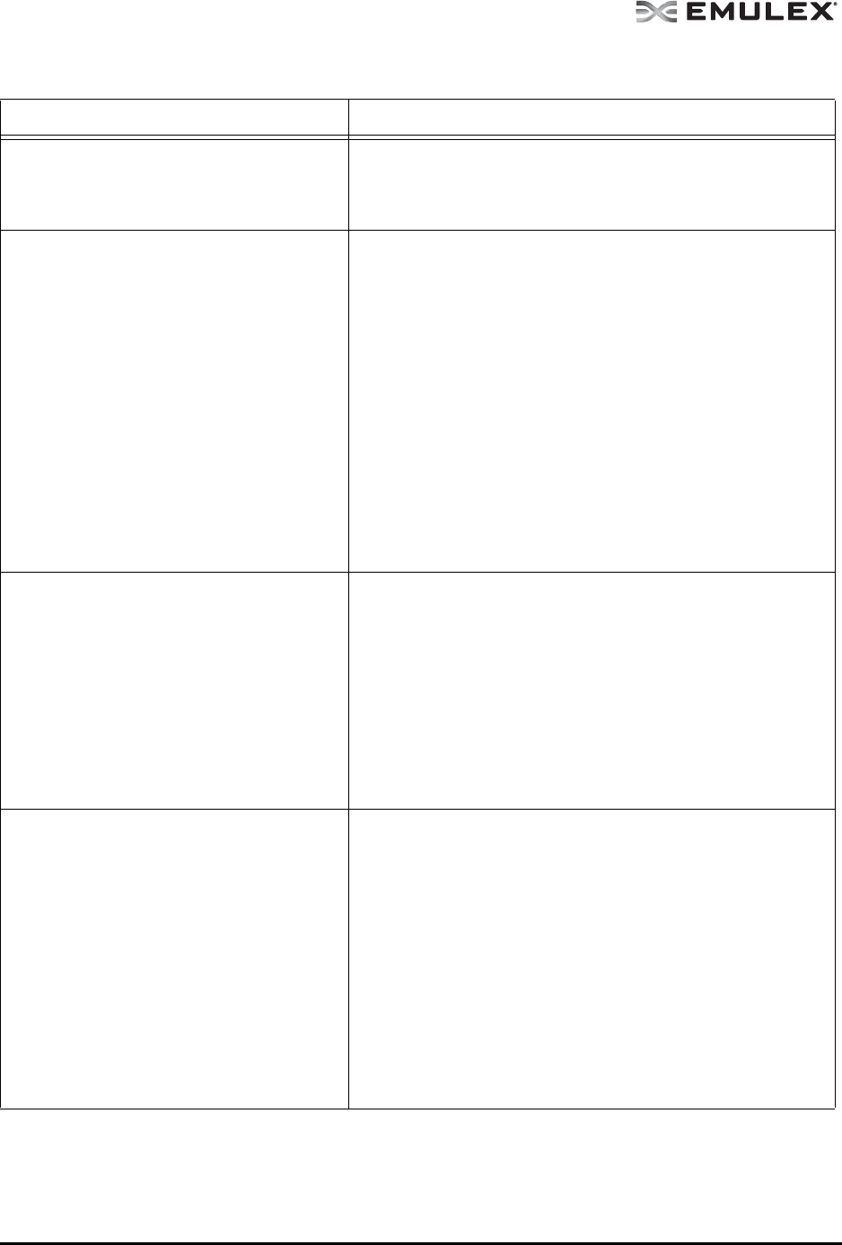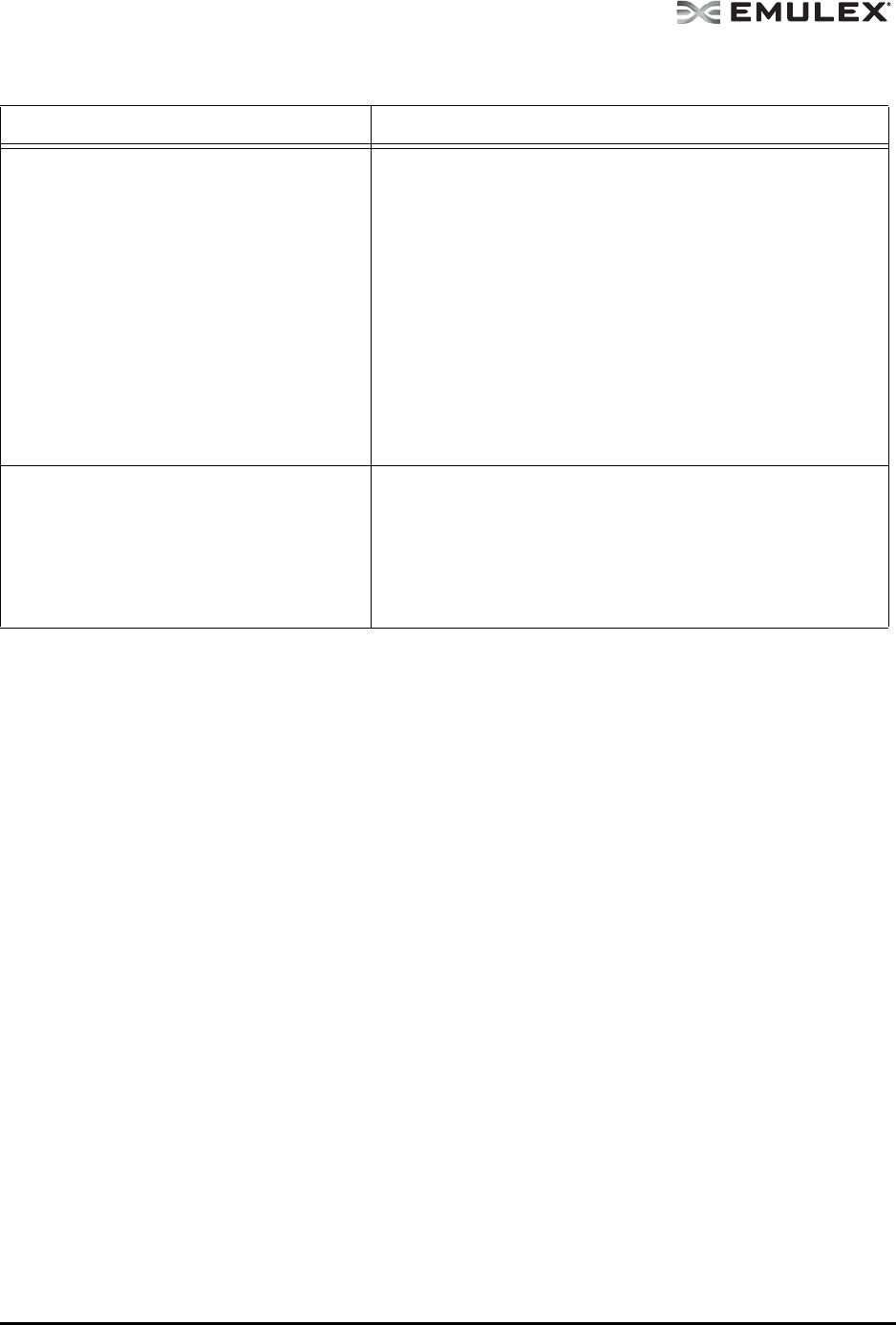 Table 7: Emulex Driver for Solaris and OneCommand Manager Application Situations