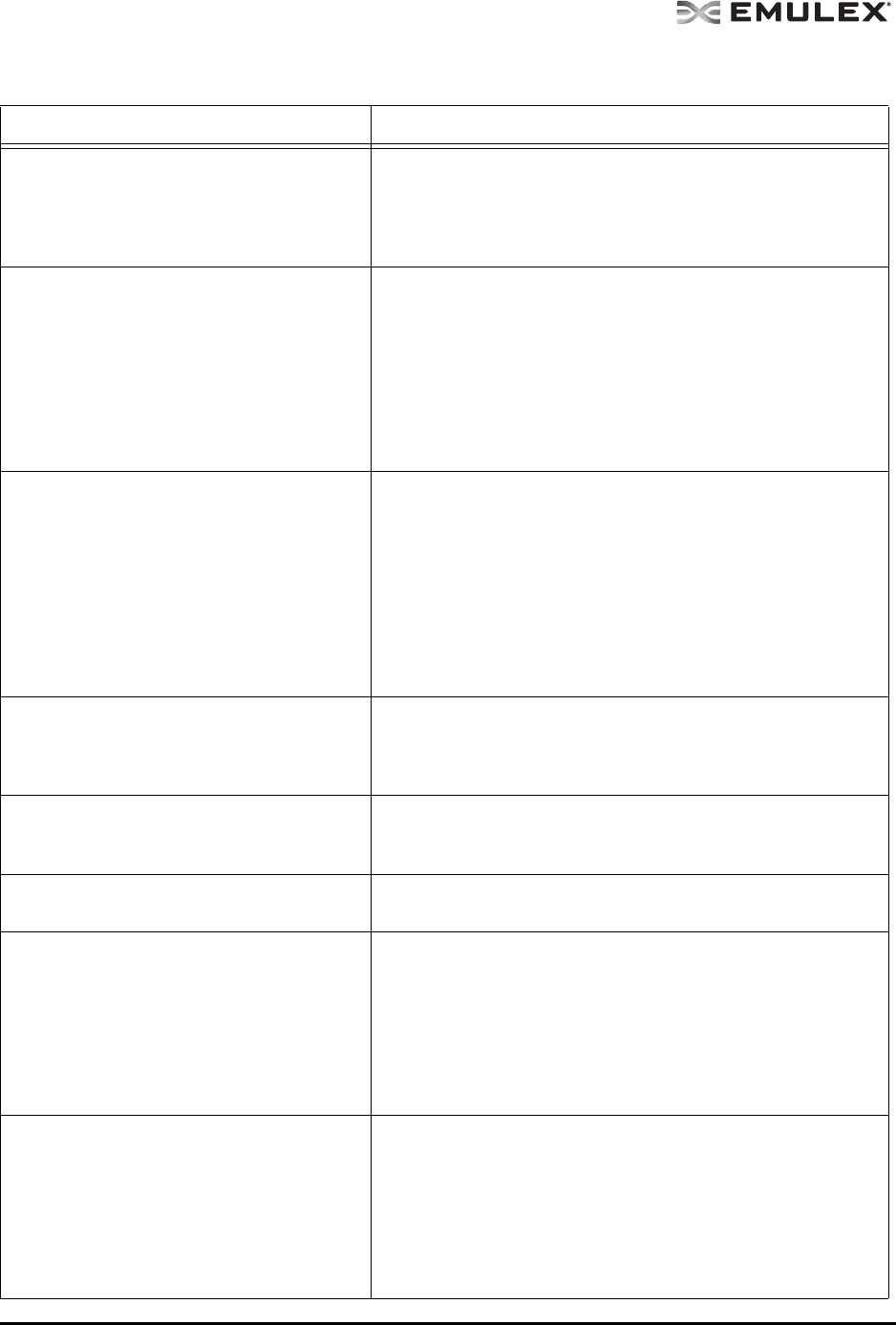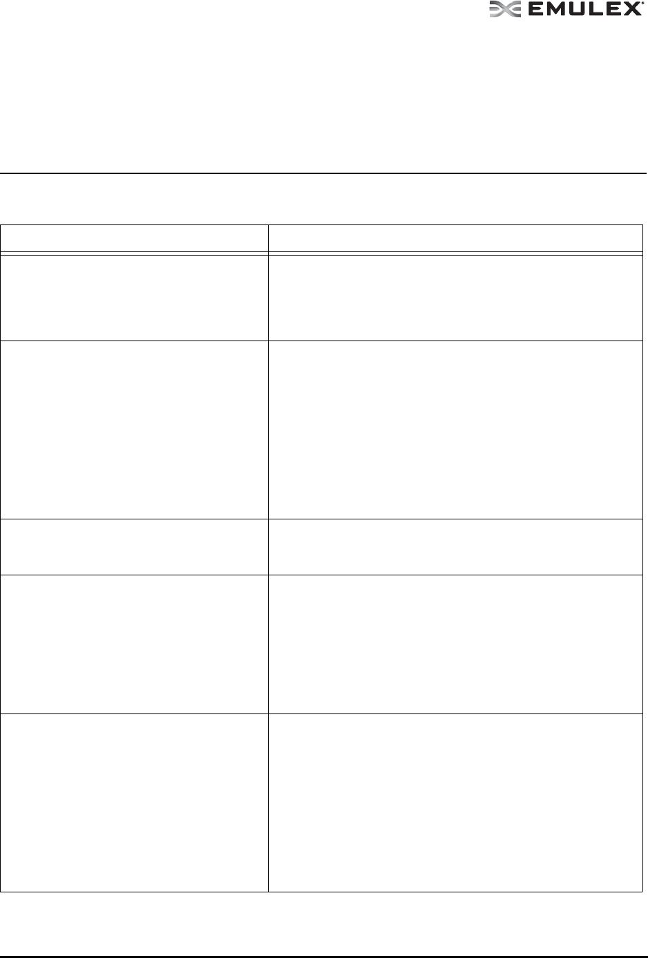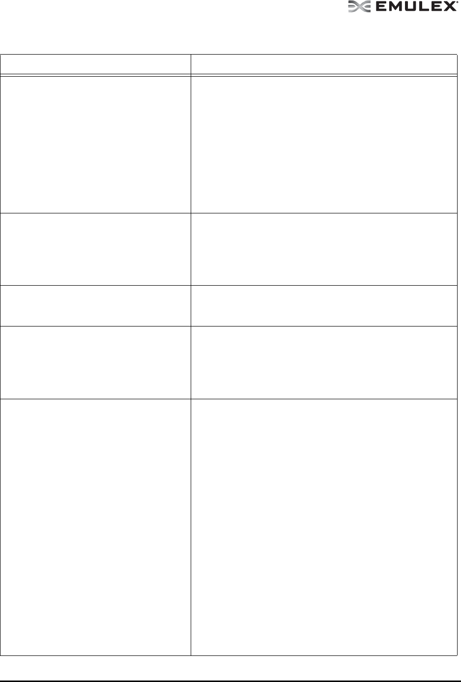 Table 7: Emulex Driver for Solaris and OneCommand Manager Application Situations
