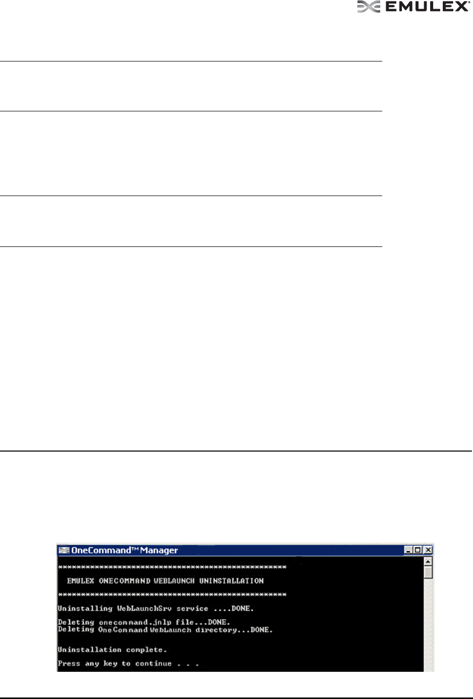 - Uninstalling the OneCommand Manager Application Web Launch Interface Only