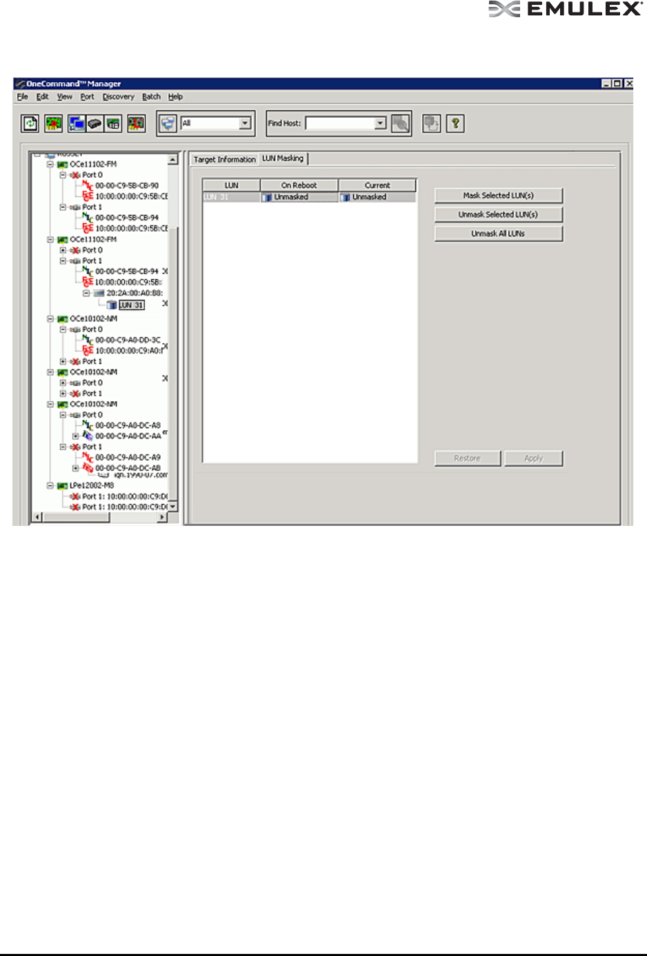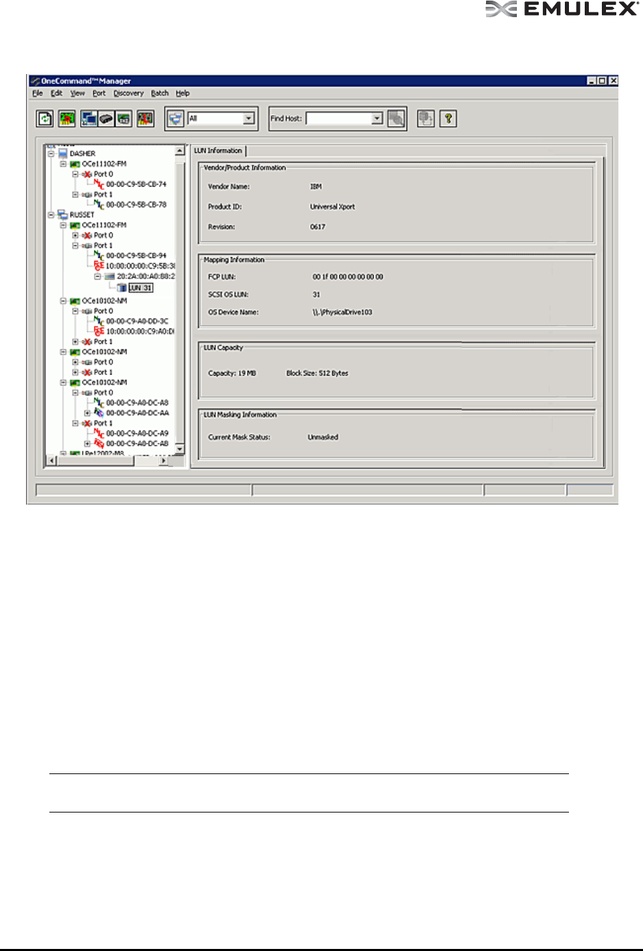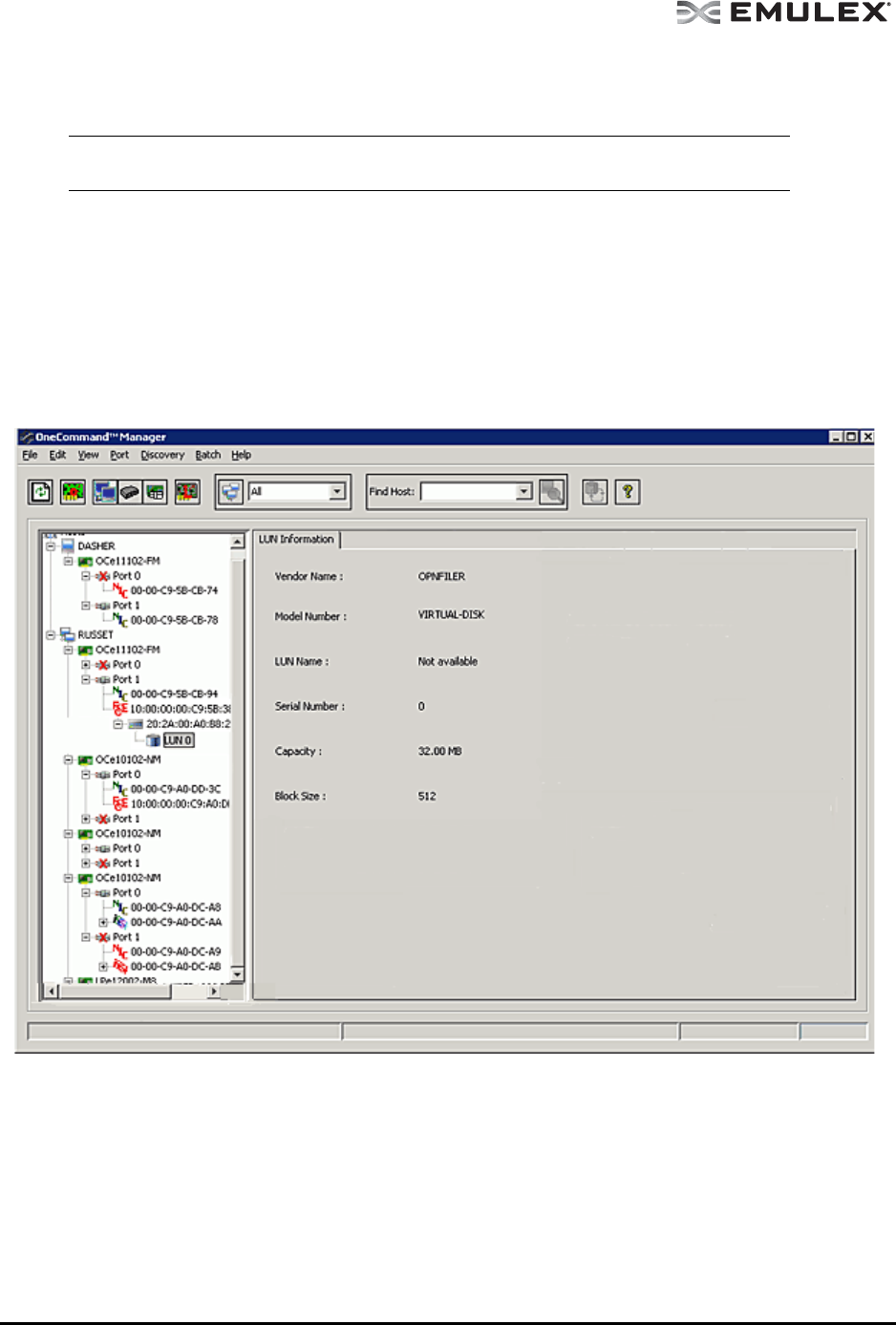 OneCommand Manager application. If new LUNs are visible,