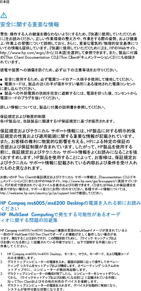 Con una imagen de múltiples idiomas MultiSeat en la HP Compaq ms6005/ms6200 Desktop PC, el audio puede dejar