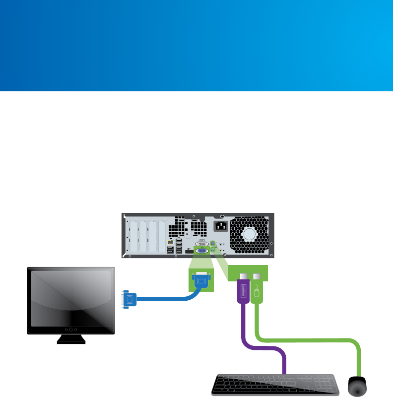 1. Conecte sólo la HP Compaq ms6005/ms6200 Desktop PC, el monitor, el mouse, el teclado, y los cables de