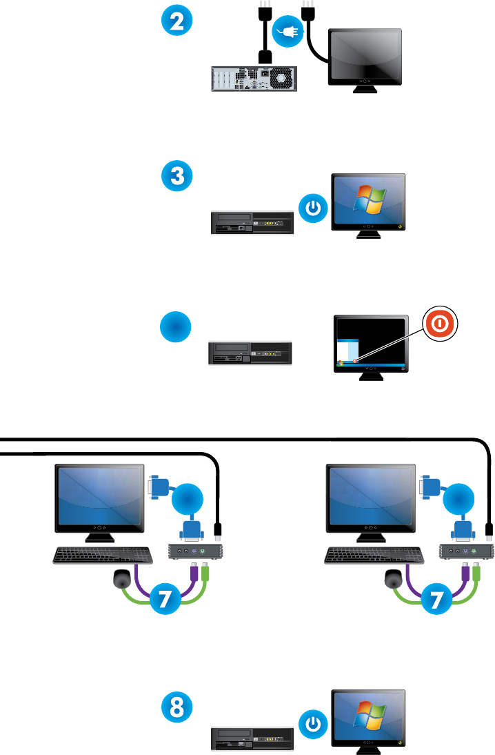 3. Cuando se finalice la configuración de la Desktop PC, apáguela y luego conecte las thin clients y otros dispositivos