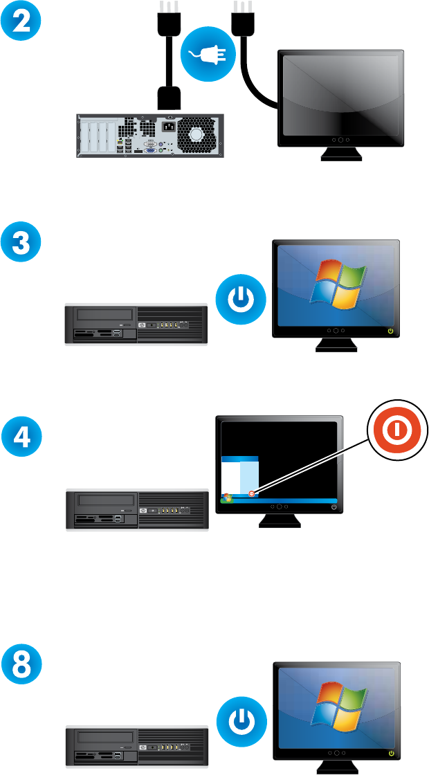 1. Connect only the HP Compaq ms6005/ms6200 Desktop PC, monitor, mouse, keyboard, and power cords.