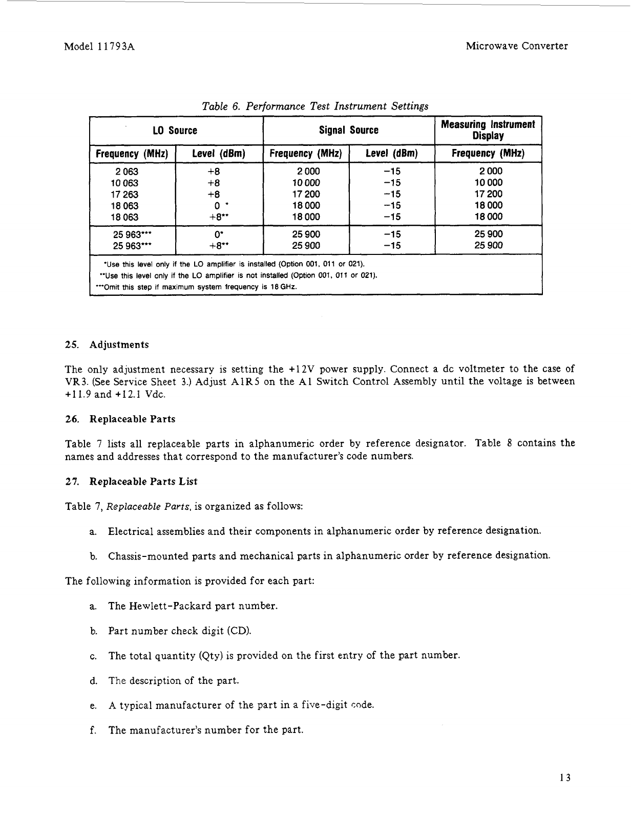 from the factory. Hewlett-Packard further certifies that its calibration measurements are traceable to the United