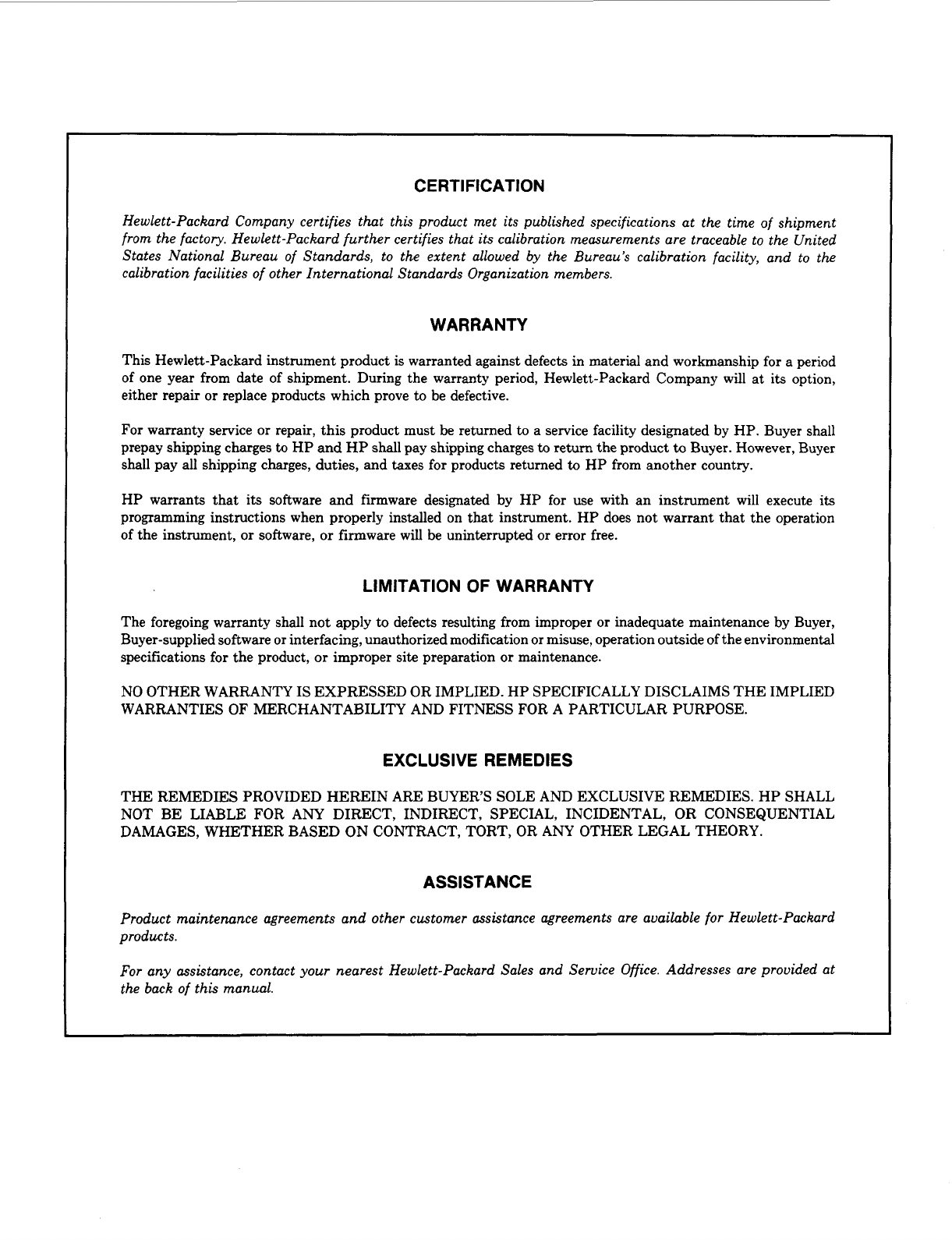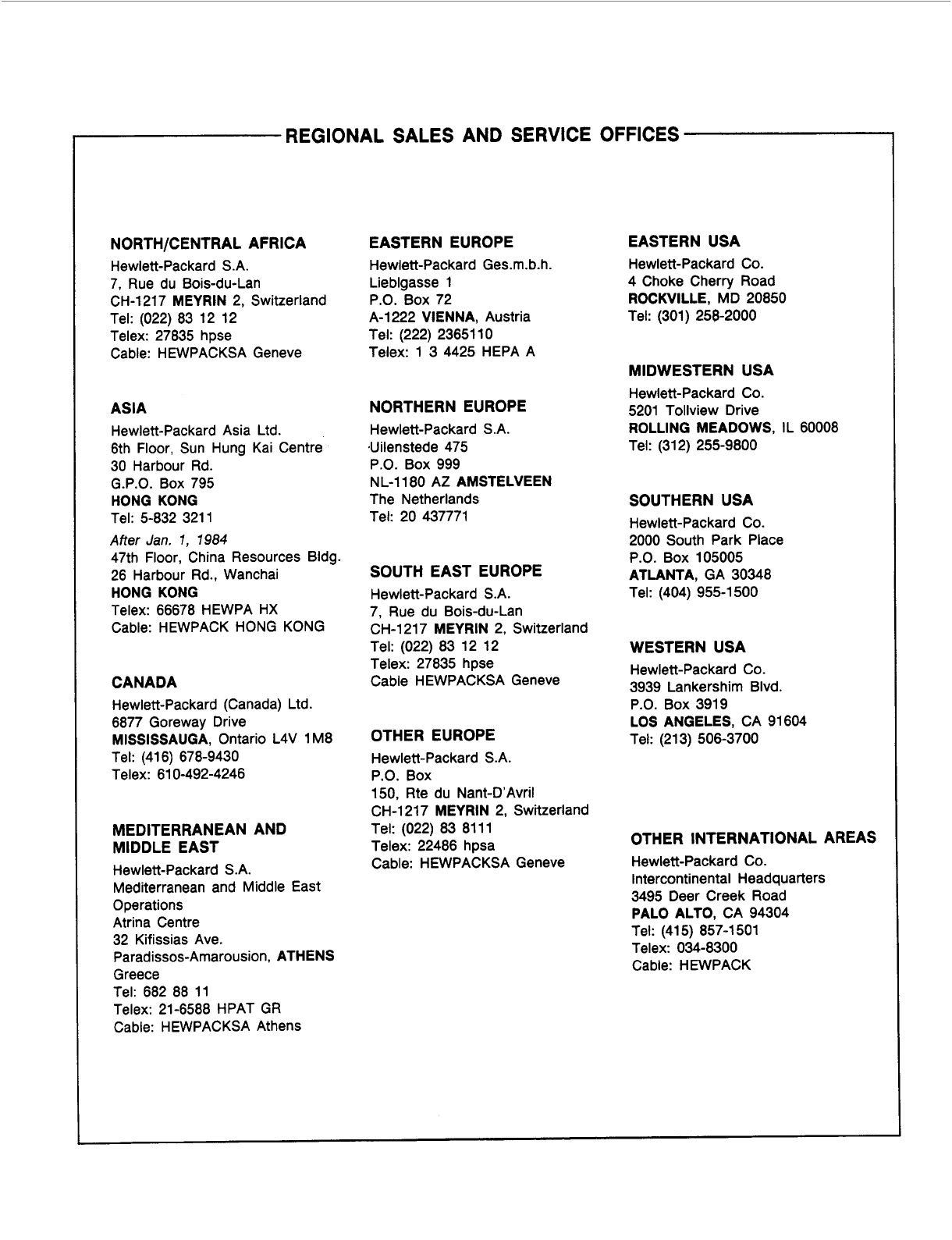any assistance, contact your nearest Hewlett-Packard Sales and Service Office. Addresses are provided at