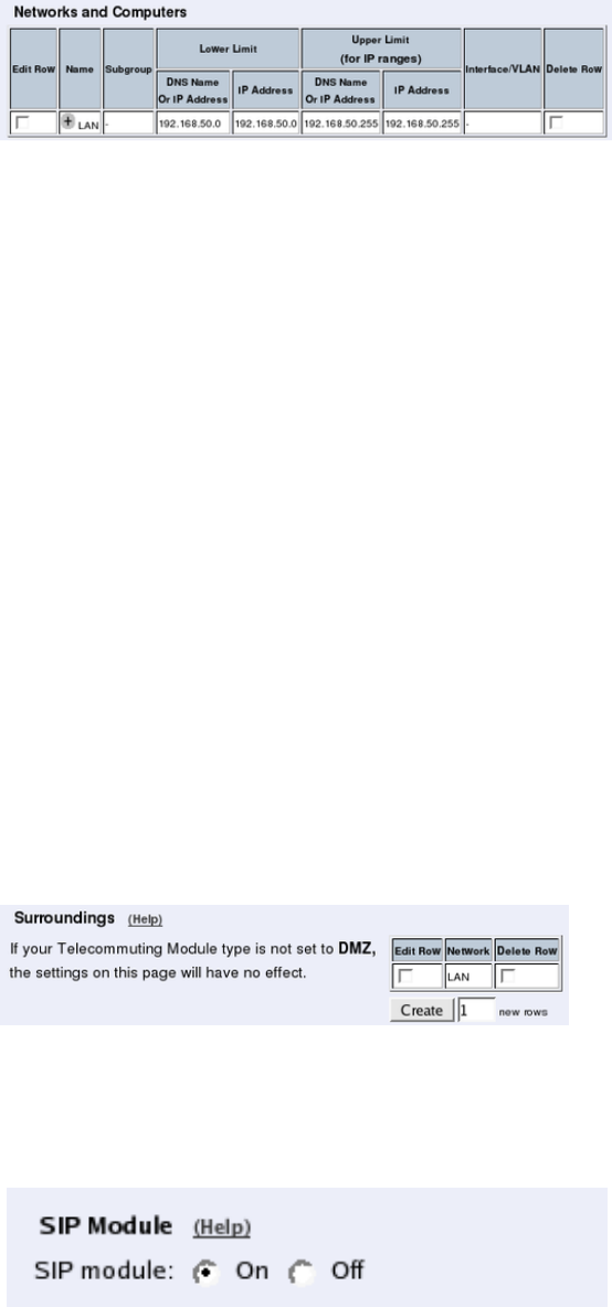 - DMZ/LAN Telecommuting Module, SIP server on the WAN