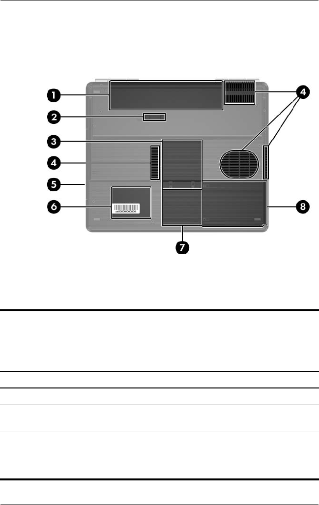 information on identifying notebook features, components, and