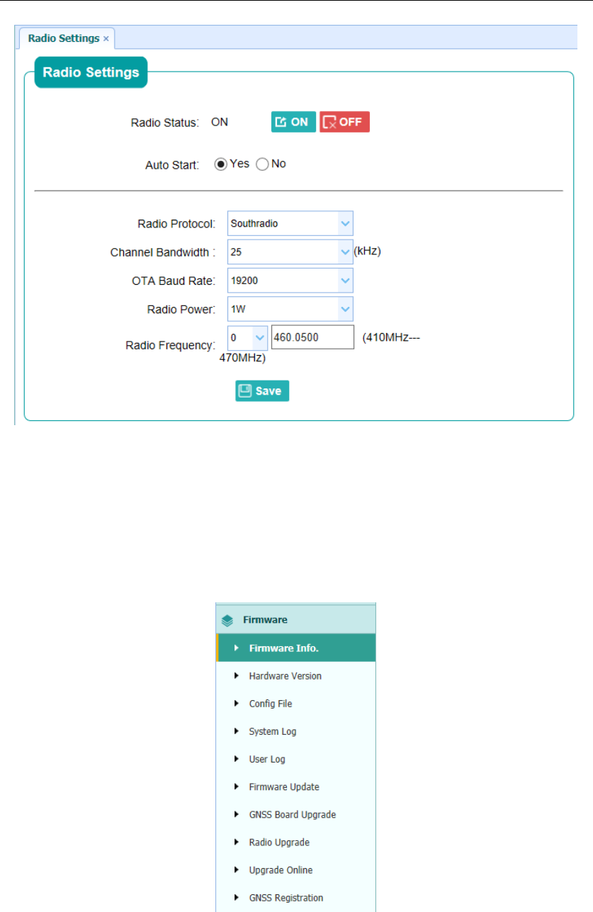 Use this submenu to turn on/off radio function and configure radio parameters.