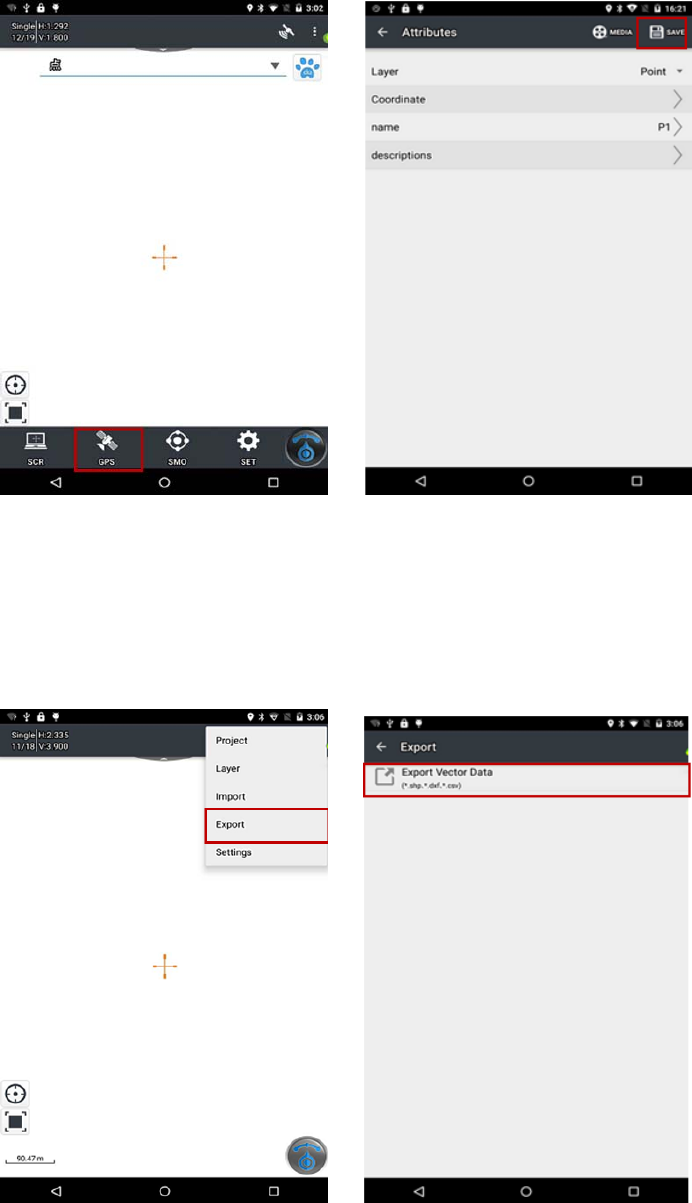 Clickmenubuttonofthehand‐heldreceiver>"Export">click“ExportVectorData”>choose
