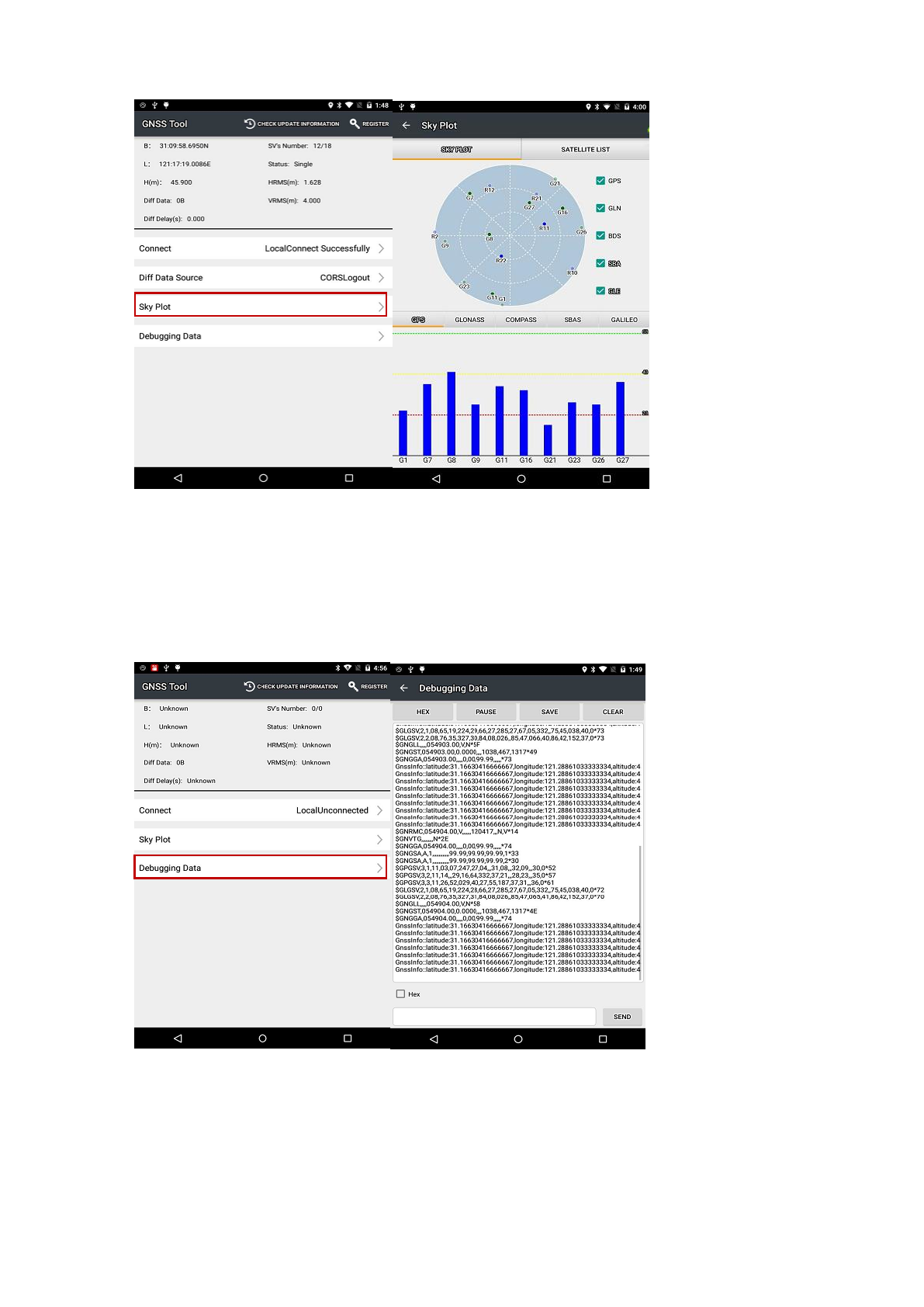 Click Sky Plot and see how many satellites (including GPS, GLONASS, BDS, GALILEO and SBAS) the device is