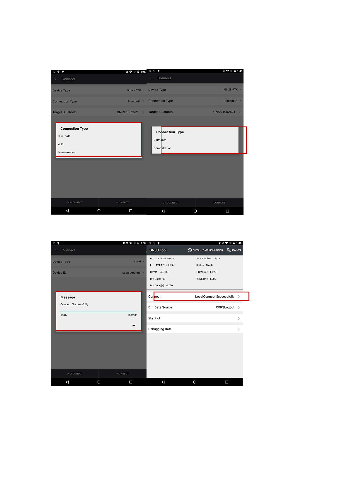3. Connection Type: For smart RTK (like i80), we selectBluetooth, WIFIorDemonstration.For GNSS RTK (like