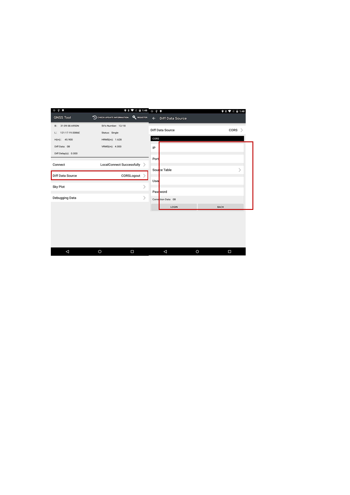 After finishing connection successfully, we can log in CORS to receive differential data.