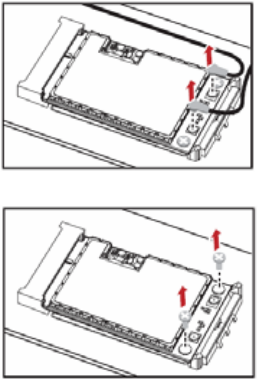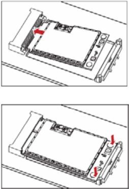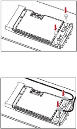 1. Insert the Mini PCI Express connector of the EM730V into the WWAN Mini PCI