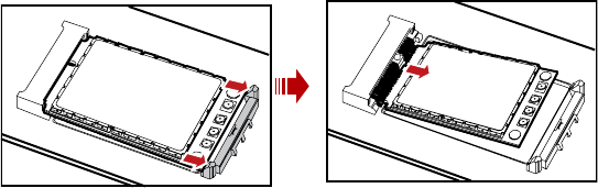 3. Slide backwards the two clips to release the EM772 from the slot. Then, lift up
