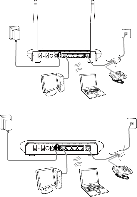 4. Telephone 5. Splitter Power adapter 6. Telephone wall jack