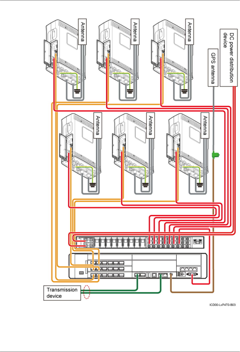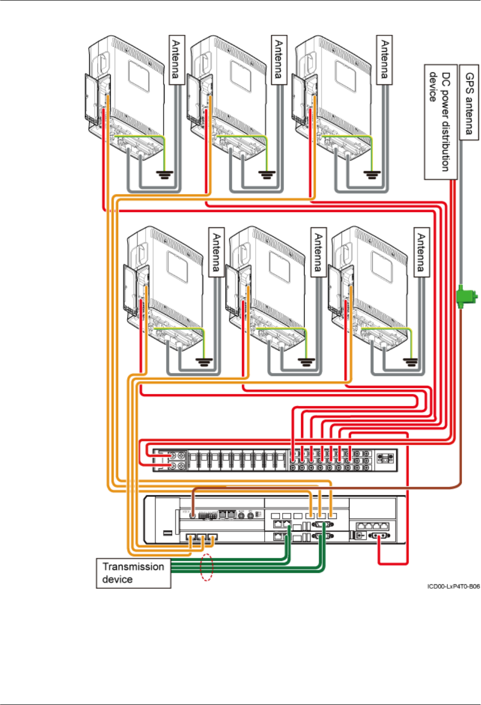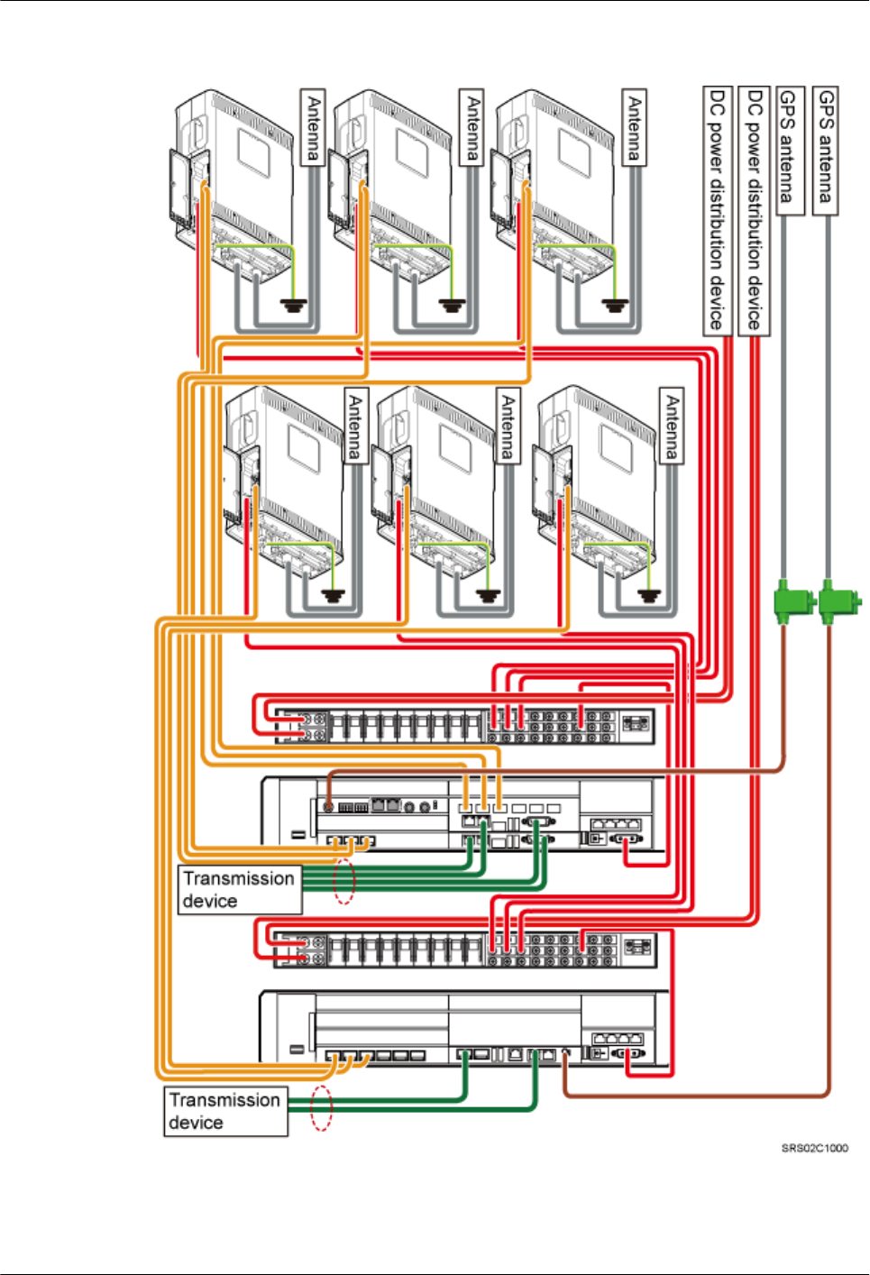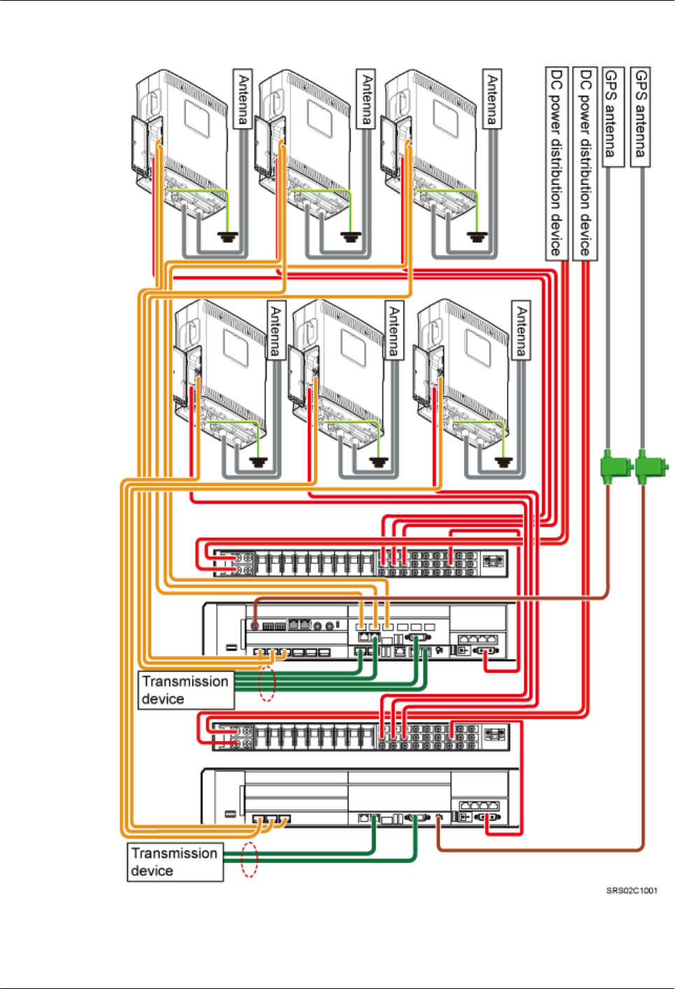 Figure 15-37 Connections of the CPRI optical cable for 12 DC RRUs
