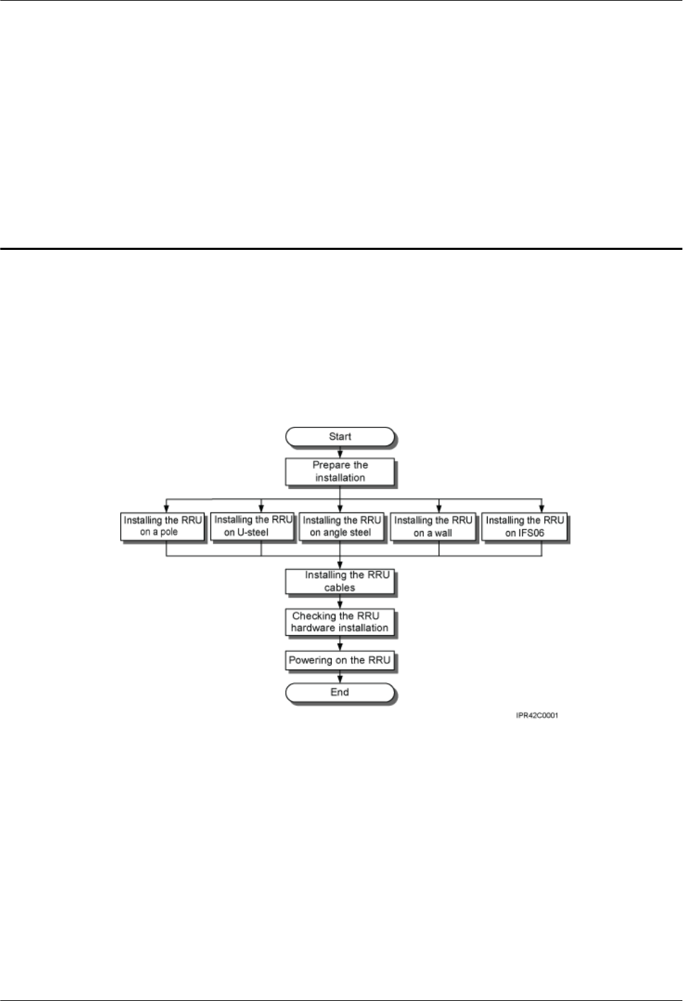 This chapter describes the procedure for installing the RRU. The procedure for installing the