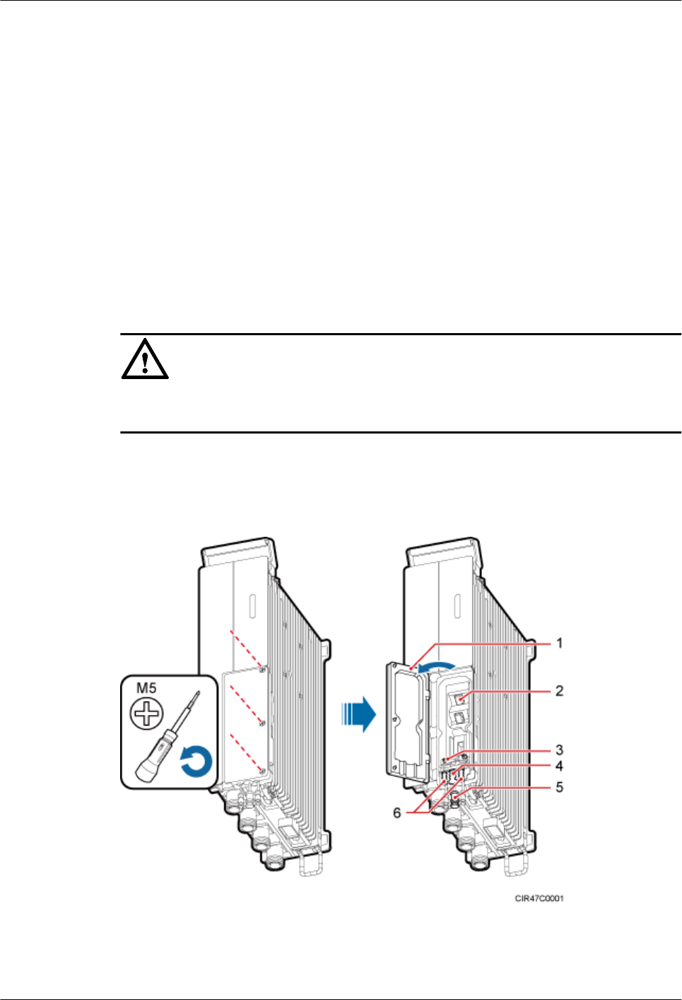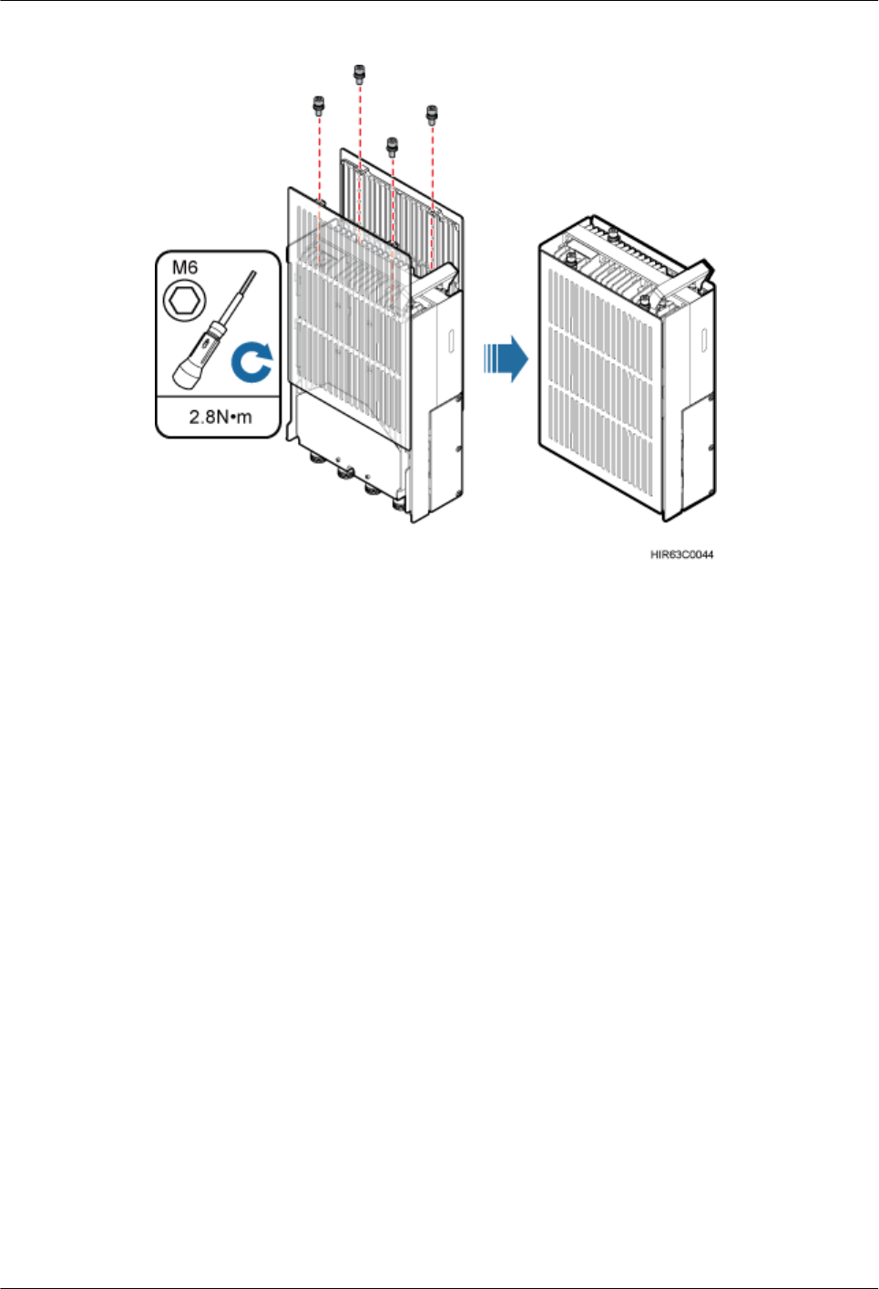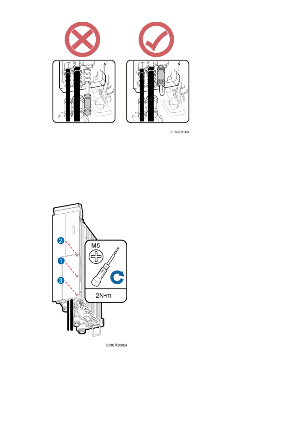 Step 3 Close the cover plate of the RRU cabling cavity. Use an M5 torque screwdriver to partially