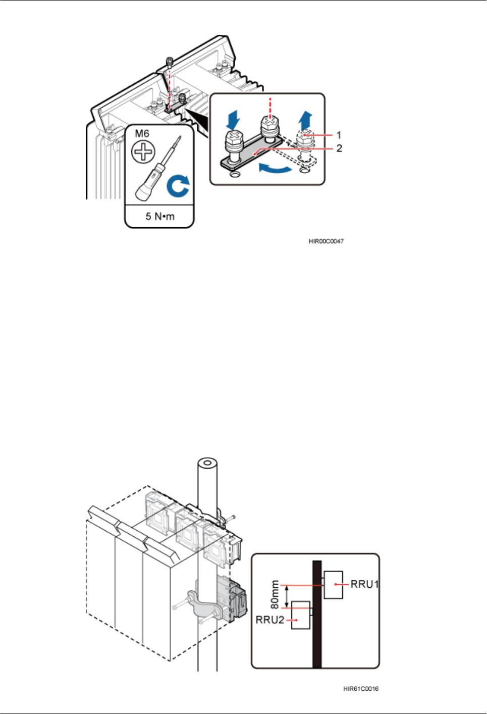 9 The protection grounding of the RRU and the surge protection grounding of the