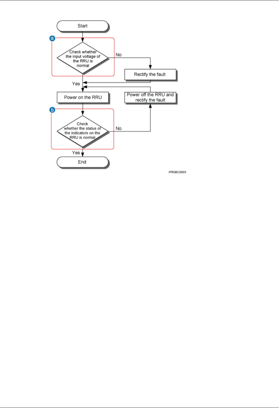 For details about how to power on an RRU, see Powering On an RRU. For details about how to power off