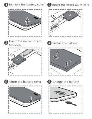 To insert a micro SIM card, the battery and a microSD card,