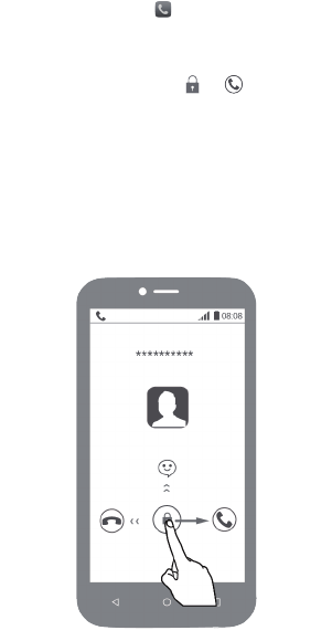 To answer an incoming call, drag to .