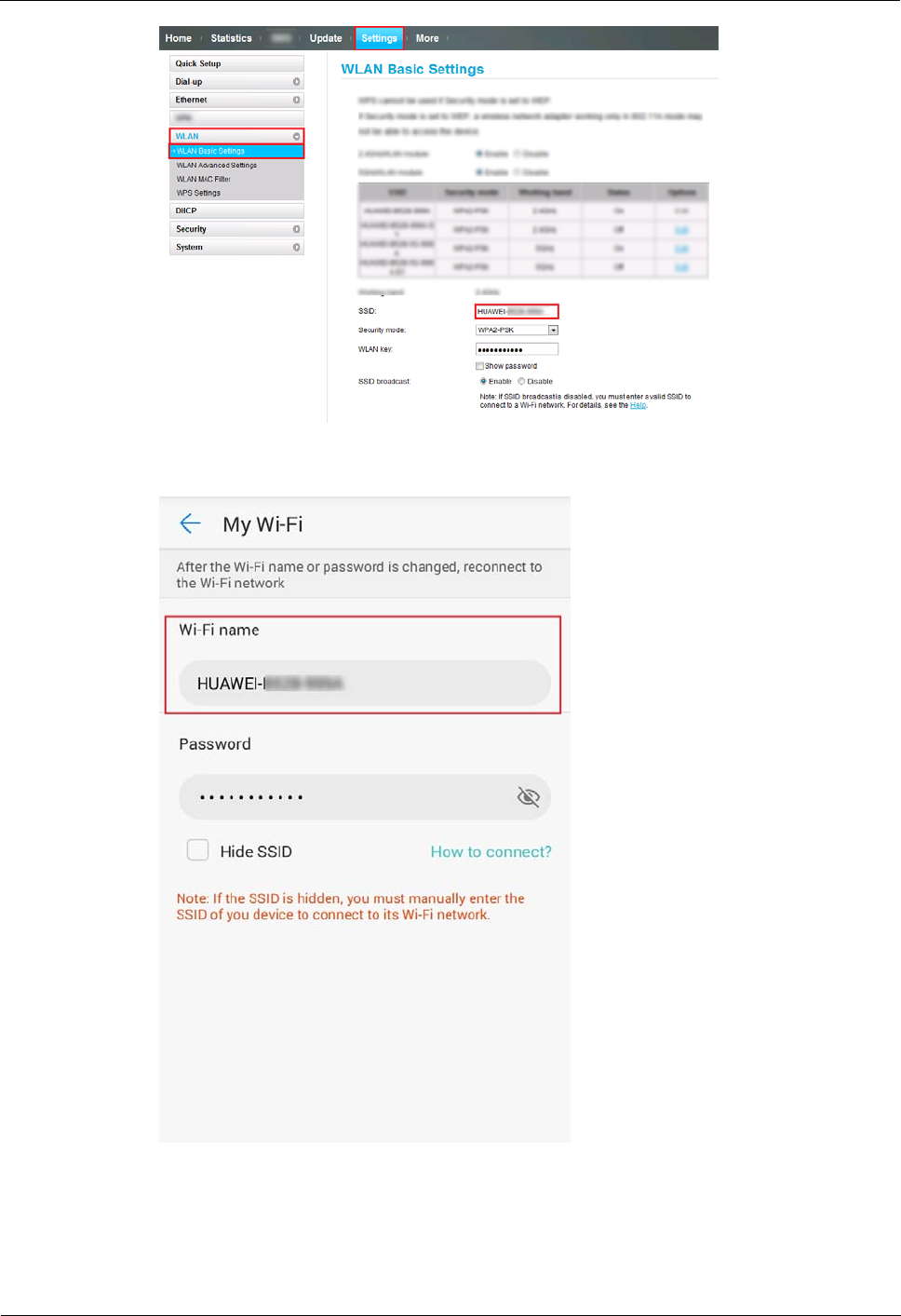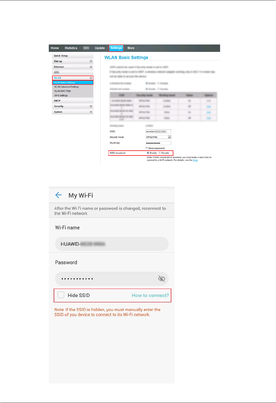 Method 2: Go to the HUAWEI HiLink app, choose Settings > My Wi-Fi, and then un-check