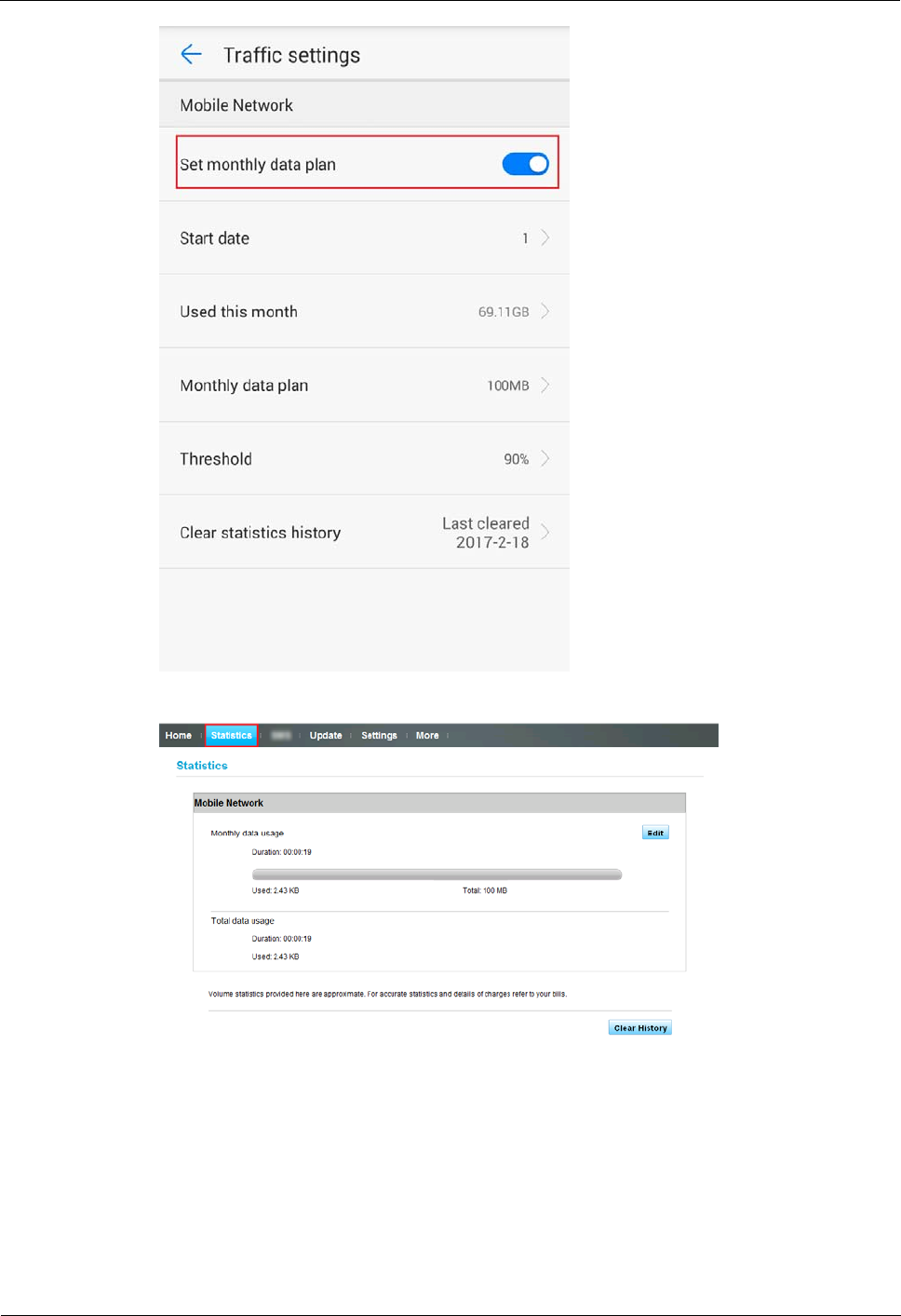 Method 2: Go to the HUAWEI HiLink app and check the data usage on the statistics page.