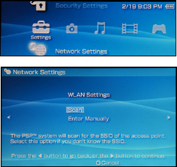 1. On the PSP, turn on the WLAN.